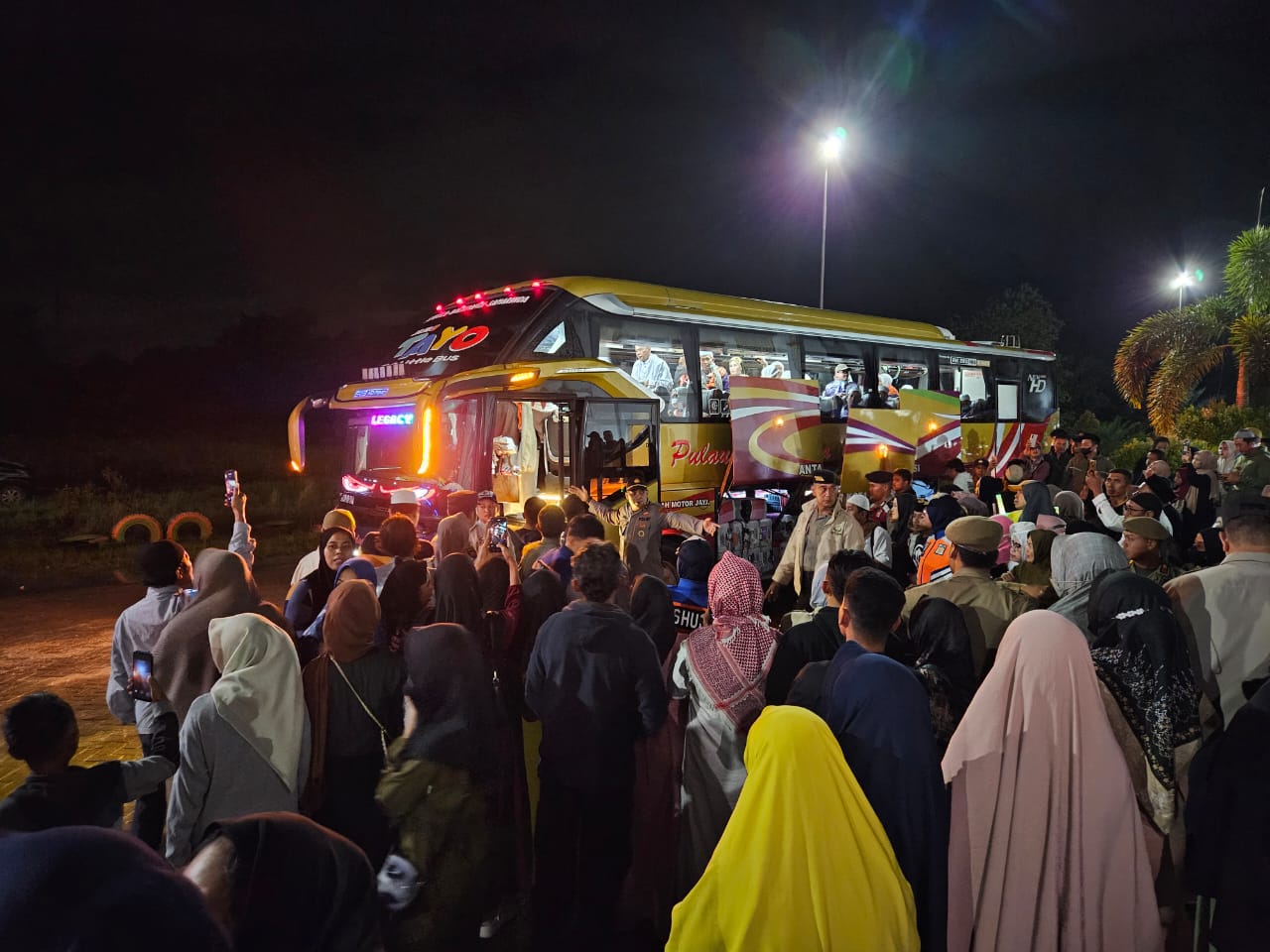 Acara dilanjutkan dengan pembacaan doa sebagai bentuk syukur atas keselamatan seluruh jamaah, kemudian ditutup dengan pelepasan jamaah menuju kediaman masing-masing menggunakan tiga unit bus berwarna kuning. Pengawalan ketat dilakukan oleh aparat kepolisian untuk memastikan proses berlangsung aman dan tertib.