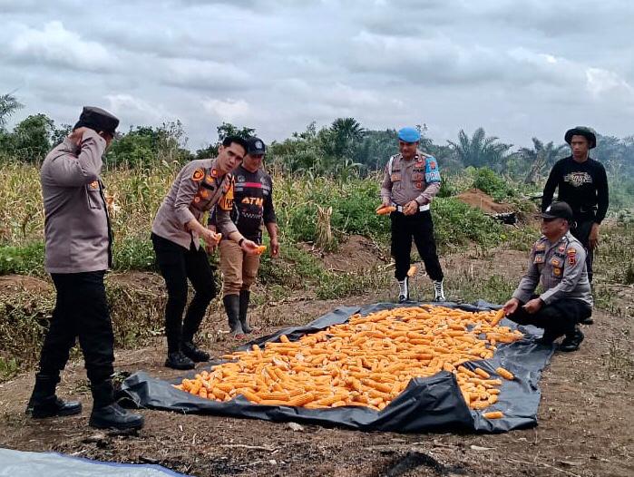Dalam pelaksanaannya, personel Polsek Batin VIII melakukan Panen Jagung serta memastikan keberlanjutan proses perawatan di lapangan kedepannya.