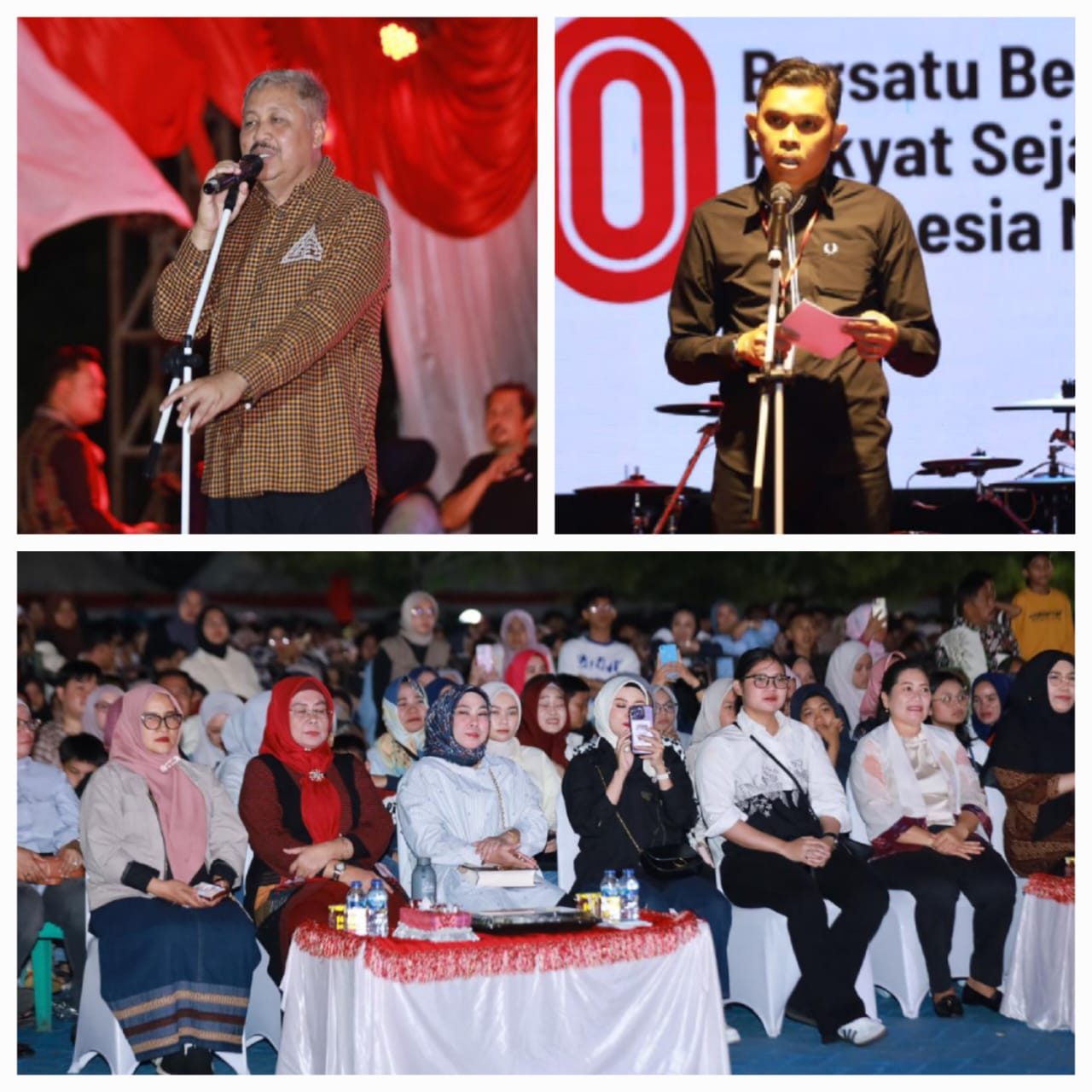Menutup seluruh rangkaian kegiatan dalam memeriahkan Hari Ulang Tahun Kemerdekaan Republik Indonesia ke-80 tingkat Kabupaten Pinrang, Pemerintah Kabupaten Pinrang menggelar malam syukuran resepsi kenegaraan yang berlangsung meriah di Halaman Kantor Bupati Pinrang, Ahad (17/8/2025) malam.