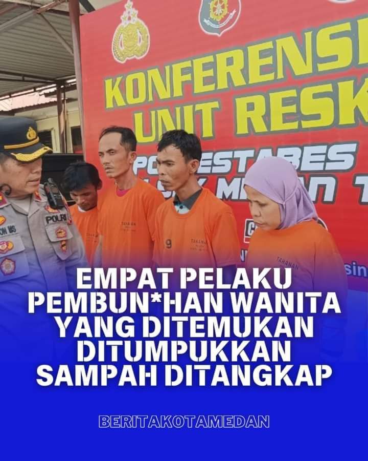 Kematian tragis Dameriahta Tarigan (42) yang jasadnya ditemukan di tumpukan sampah di Jalan Pasar V, Desa Medan Estate, akhirnya terungkap. Polsek Medan Tembung berhasil meringkus empat pelaku yang terlibat dalam kasus ini.