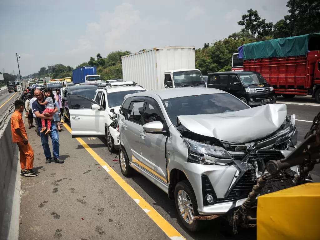 Tabrakan beruntun terjadi di Tol Layang MBZ arah Jakarta pada Minggu malam. Peristiwa ini sempat menyebabkan lalu lintas tersendat.