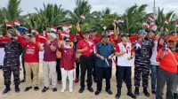 Polres Dan Pemkot Bontang Bentangkan Bendera Merah Putih Keliling Pulau Beras Basah