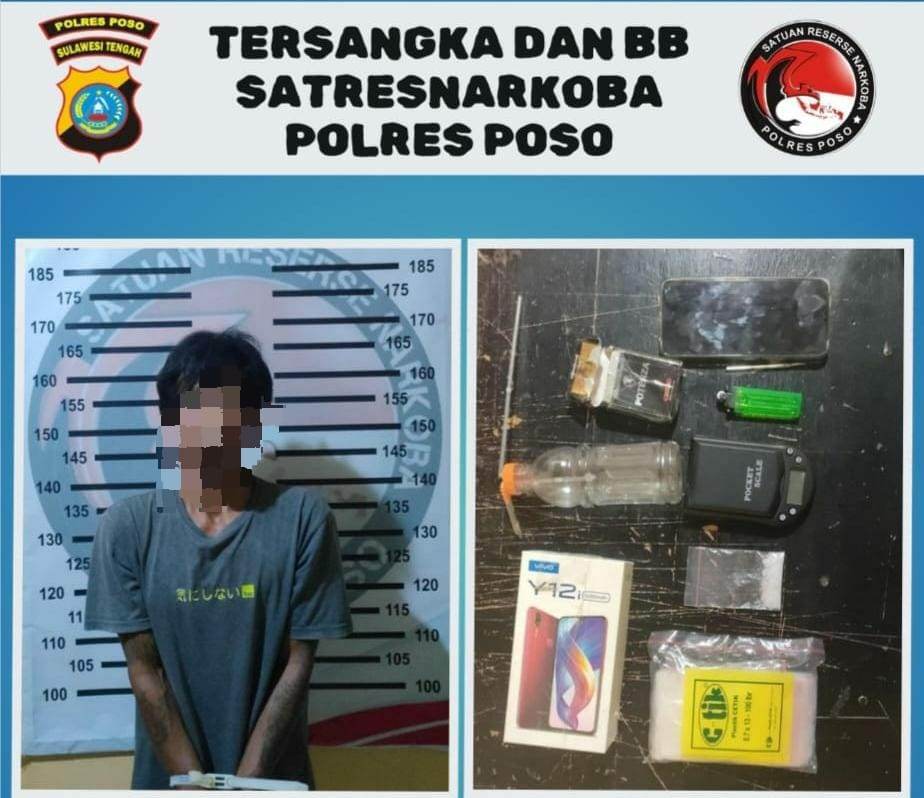 Polres Poso kembali mengungkap tindak pidana narkotika jenis sabu di Jalan Nusa Indah, Kelurahan Gebangrejo, Kecamatan Poso Kota, Kabupaten Poso. Pada hari Selasa, 8 April 2025, sekitar pukul 15.00 WITA, anggota opsnal Satresnarkoba Polres Poso yang dipimpin oleh KBO Satresnarkoba, Ipda Risman A.M., telah mengamankan 1 (satu) orang laki-laki berinisial S (48).