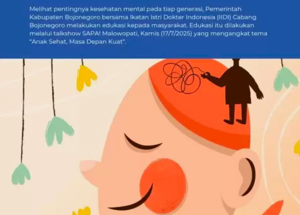 Pemerintah Kabupaten Bojonegoro bersama Ikatan Istri Dokter Indonesia (IIDI) Cabang Bojonegoro menyelenggarakan talkshow SAPA! Malowopati dengan tema “Anak Sehat, Masa Depan Kuat” pada Kamis, 17 Juli 2025.