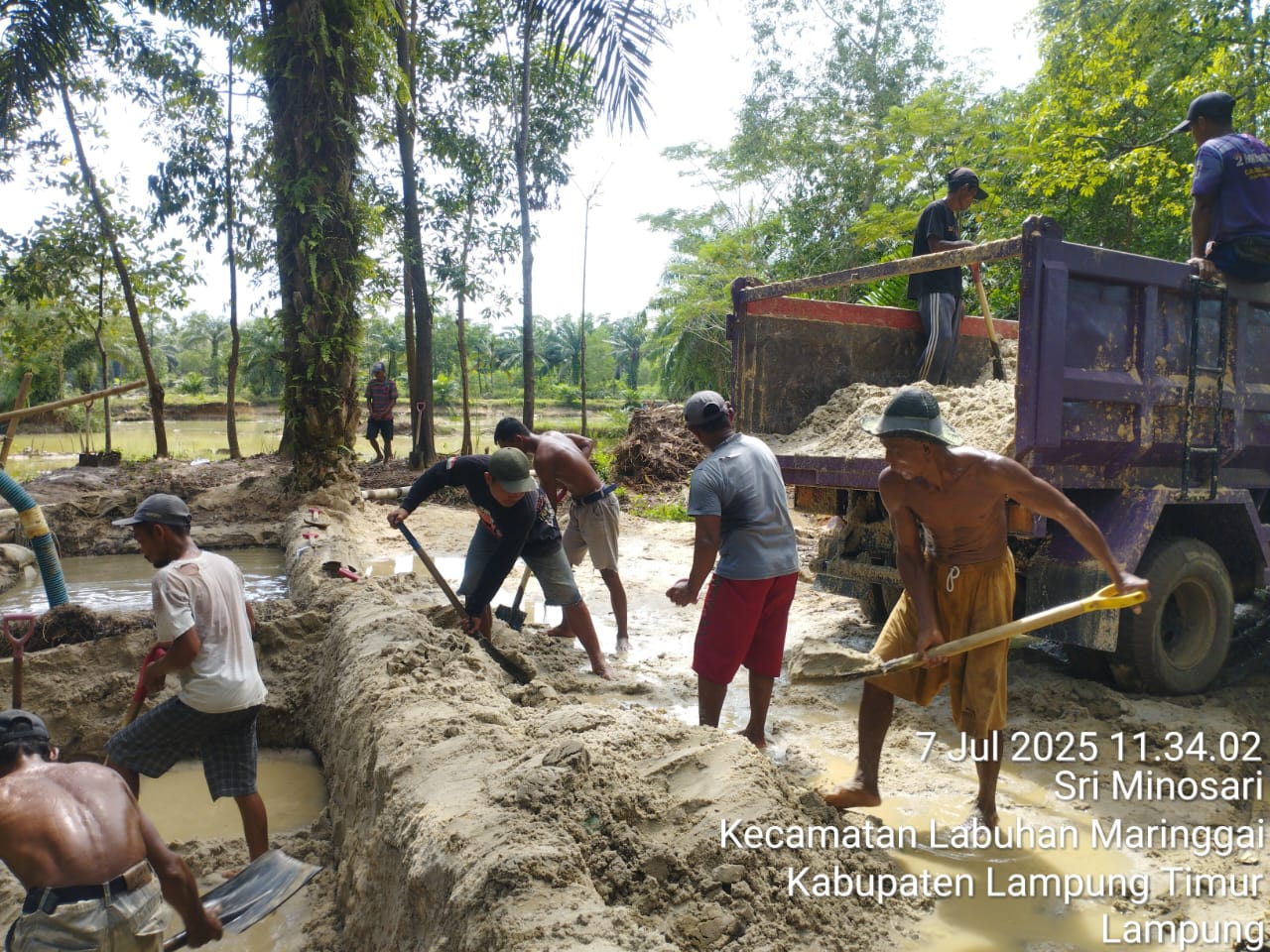 Diberitakan sebelumnya tambang pasir kembali marak di Kabupaten Lampung Timur. Dari pantauan, tambang pasir ilegal tersebut ditemukan di Desa Sriminosari, Kecamatan Labuhan Maringgai dengan dalih pemilik lahan yakni bertujuan untuk persawahan program ketahanan pangan, padahal sekitar lokasi tersebut areal perkebunan Sawit.