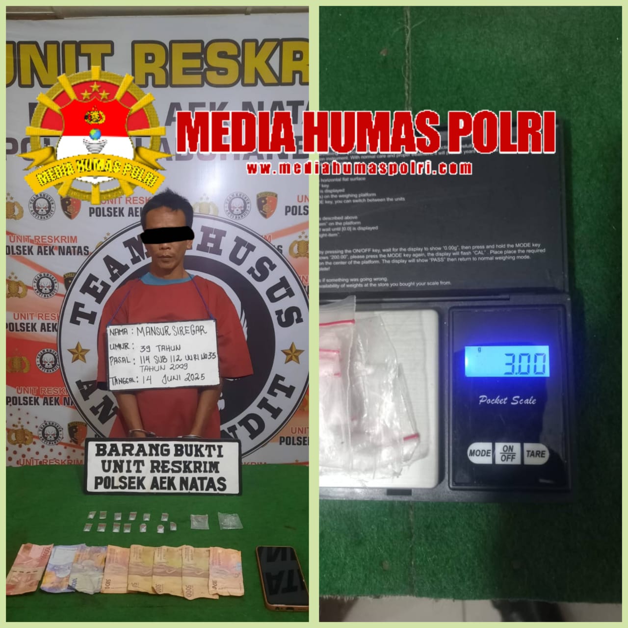 Pada hari Sabtu tanggal 14 Juni 2025 sekira pukul 20.30 Wib, Team Opsnal Polsek Aek Natas Polres Labuhanbatu mendapat informasi dari masyarakat bahwa di Areal Kebun Kelapa Sawit milik LEGIMUN yang berada di Dusun II Desa Pangkalan Kecamatan Aek Natas Kabupaten Labuhanbatu Utara sering terjadi transaksi dan pesta narkotika jenis sabu-sabu.