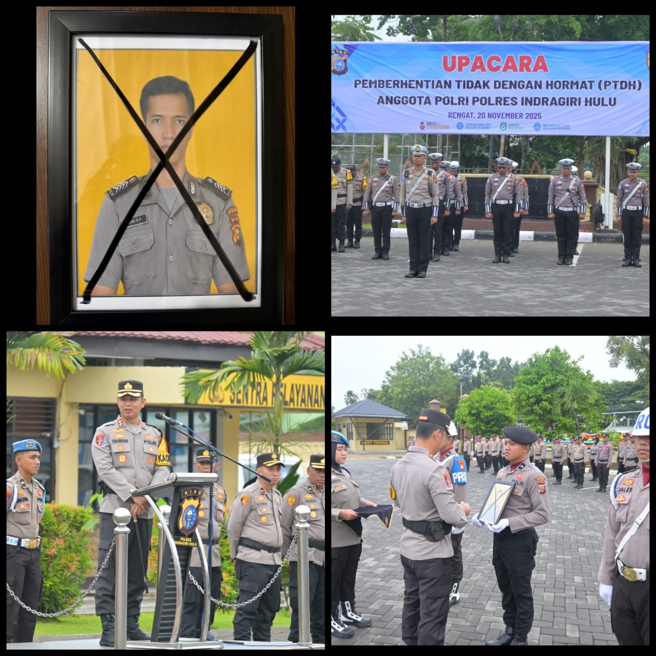 Pada Kamis pagi (20/11/2025), karir kepolisian Bripka Heru Restu Pratama resmi berakhir tragis. Ia diberhentikan dengan tidak hormat (PTDH) melalui upacara yang digelar di halaman Mapolres Inhu, Rengat.