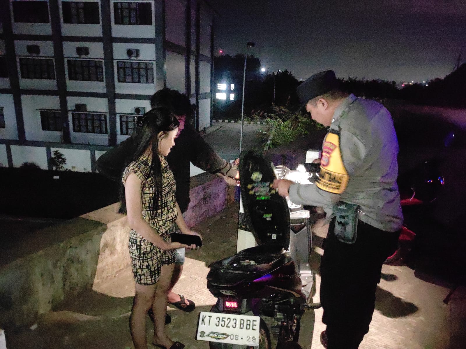 Patroli kemudian dilanjutkan dengan pemberian imbauan kepada pengunjung pasar malam agar tetap waspada terhadap barang bawaan dan kondisi sekitar. Sebagai bagian dari upaya antisipasi dini, personel juga menyempatkan diri melakukan pemeriksaan badan secara humanis kepada sekelompok anak muda yang nongkrong, termasuk di Jl. Bersinar, dekat SMAN 14, guna mencegah potensi pesta miras atau penyalahgunaan narkoba.