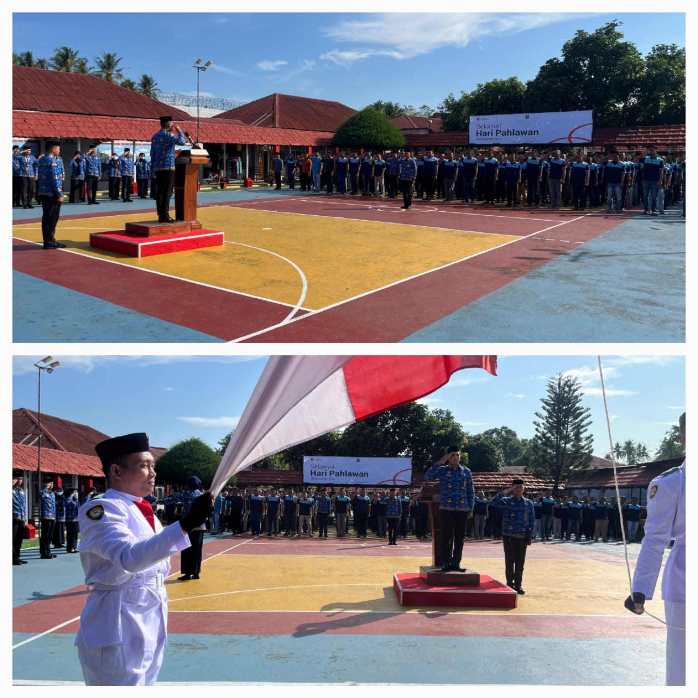 Kepala Sub Seksi Pelayanan Tahanan Rumah Tahanan Negara (Rutan) Kelas IIB Pinrang, Andy Prajakarana pimpin Upacara Peringatan Hari Pahlawan ke-79 Tahun 2024, bertempat di Lapangan serbaguna Rutan Pinrang, Ahad (10/11/2024).
