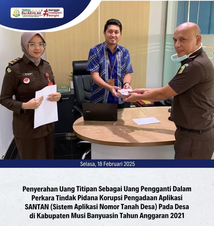 Penyerahan Uang Titipan sebagai Uang Pengganti dalam perkara Tindak Pidana Korupsi Pengadaan Aplikasi SANTAN (Sistem Aplikasi Nomor Tanah Desa)