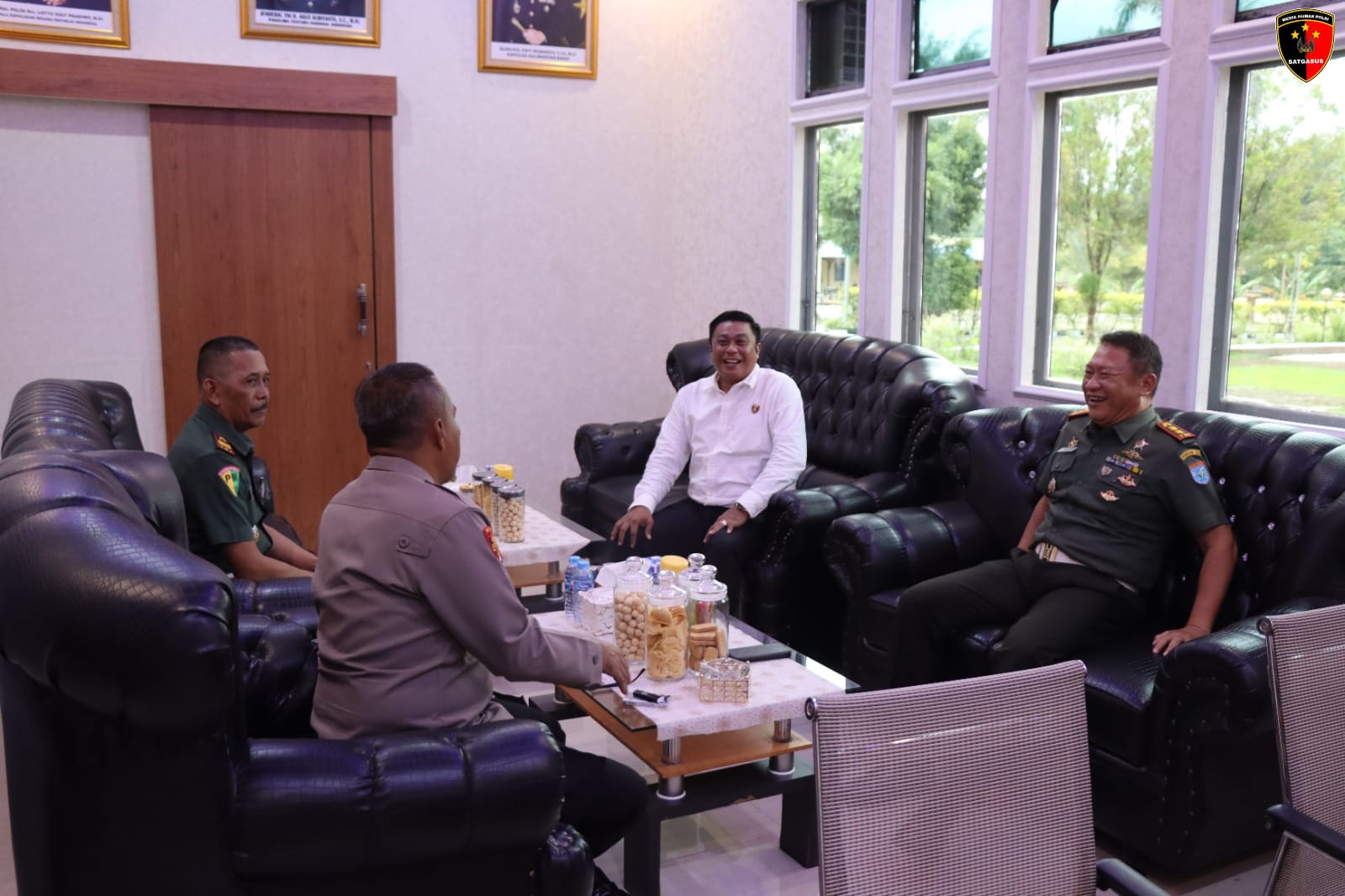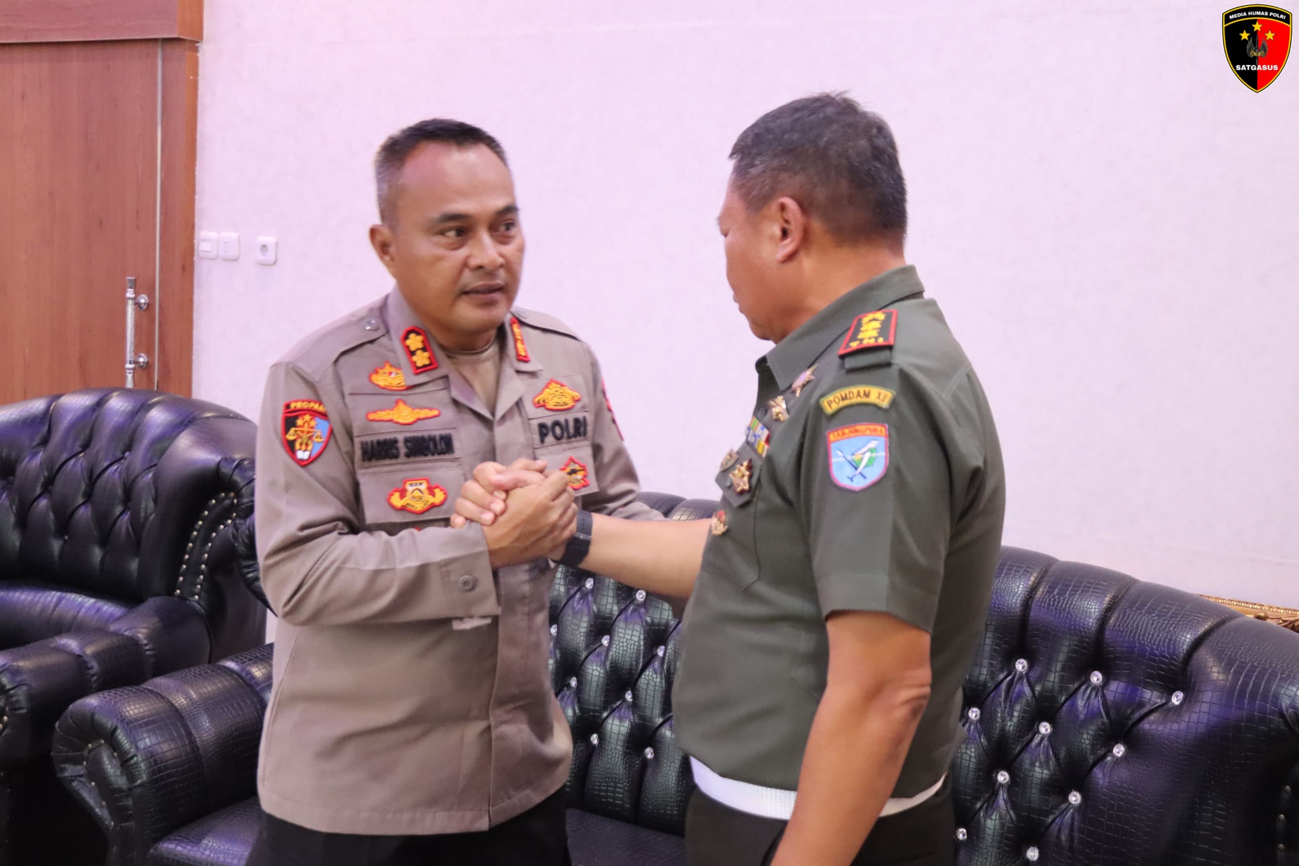 Polres Melawi Polda Kalbar – Kapolres Melawi AKBP Harris Batara Simbolon, S.I.K., S.H., M.Tr.Opsla di dampingi Kasat Reskrim AKP Ambril, S.H., S.A.P menerima kunjungan kerja (Kunker) dan silaturahmi Komandan Detasemen Polisi Militer (Dandenpom) XII/1- Stg Letkol Cpm Muh.Wiryawan.R., S.H., M.H bersama Komandan Sub Detasemen Polisi Militer (Dansubdenpom) XII/1-3 Mlw Lettu Cpm Almujib Priyono di ruang kerja Kapolres Melawi, Senin (5/5/25).