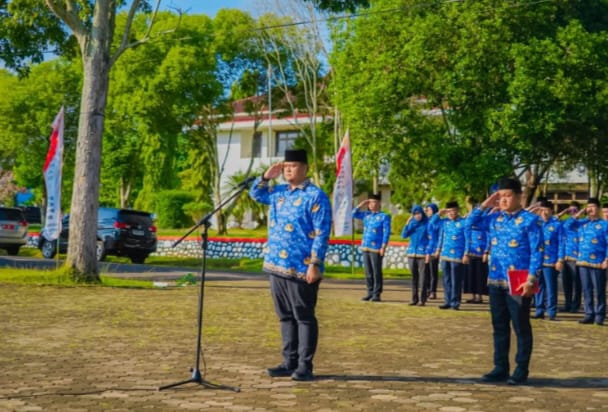 Sekretaris Daerah Banyuasin, Ir. Erwin Ibrahim, S.T., M.M., M.B.A., IPU., ASEAN Eng menghadiri sekaligus memimpin apel gabungan mewakili Bupati Banyuasin yang dilaksanakan di lapangan upacara Kantor Bupati Banyuasin pada Selasa, (17/06).