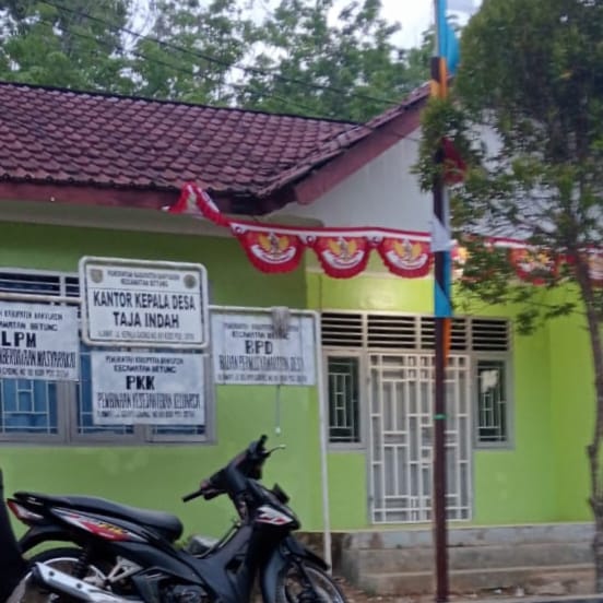 Desa Taja indah kecamatan Betung Kabupaten Banyuasin Sumatera Selatan. Saat Penerimaan perangkat Desa Taja Indah beberapa waktu lalu, ada beberapa perangkat Desa yang sudah melebihi batas umur untuk bekerja di pemerintahan Desa