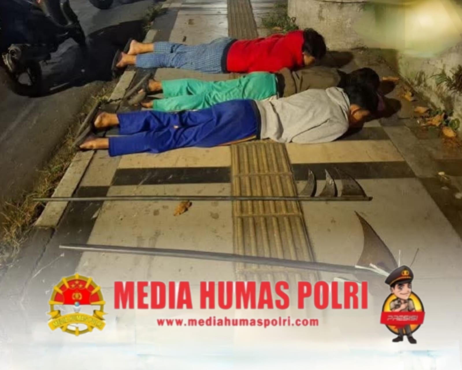 Tiga remaja di bawah umur di amankan oleh unit patroli Polsek citamiang polres Sukabumi kota pada Senen (9/6/2025) dini hari .mereka di tangkap saat mengendarai sepeda motor secara berboncengan tiga sambil mengacungkan senjata tajam di sekitar jalan gudang, Cikole kota sukabumi penangkapan ini di lakukan usai polisi menerima laporan warga terkait aksi tawuran yang terjadi sebelumnya di jl otista kampung cijangkar ,Citamiang kota sukabumi.
