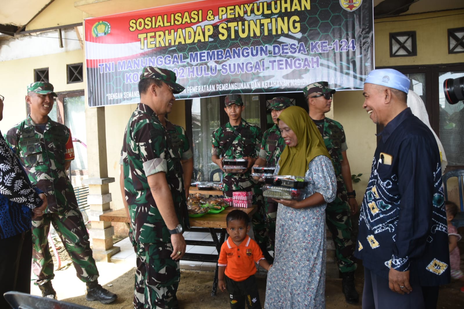 Satuan Tugas (Satgas) TNI Manunggal Membangun Desa (TMMD) ke-124 Kodim 1002/Hulu Sungai Tengah (HST) menggelar kegiatan penyuluhan tentang stunting di wilayah Haruyan.