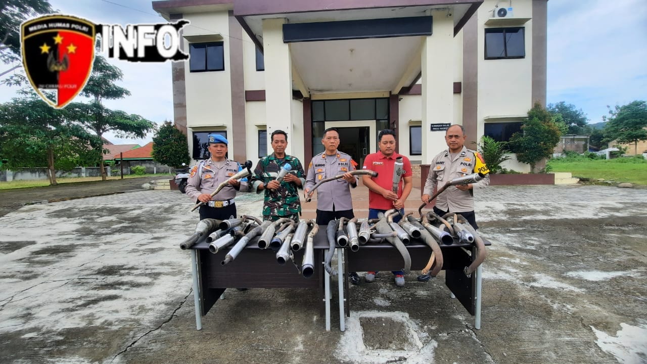 Puluhan Knalpot brong berhasil diamankan Polres Wonogiri saat perayaan malam pergantian tahun baru 2025 di wilayah kabupaten Wonogiri, Selasa (31/12/2024)
