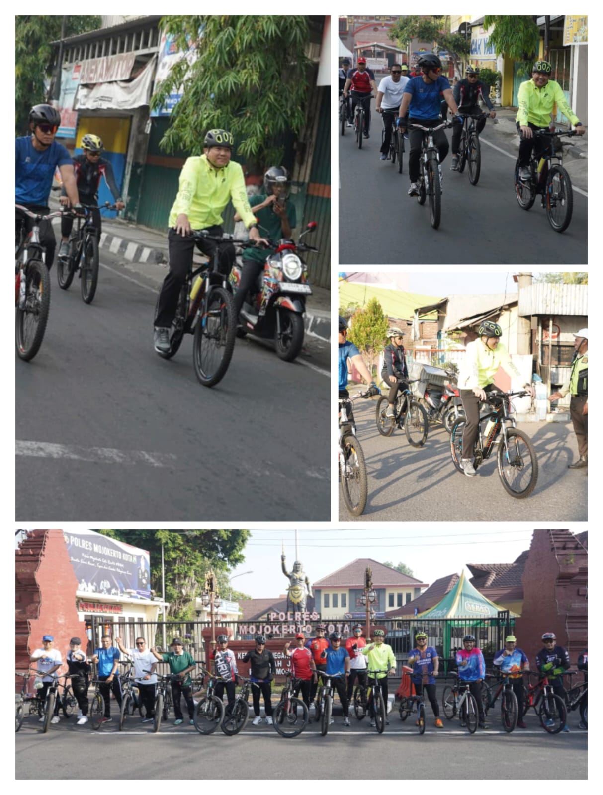 Dalam suasana pagi yang masih sejuk disela-sela masyarakat sedang melaksanakan aktifitas, Kapolres Mojokerto Kota AKBP Herdiawan Arifianto, S.H., S.I.K., M.H., bersama Pejabat Utama (PJU), melaksanakan kegiatan bersepeda atau gowes yang bertajuk “Ting Ting – Kring Kring Polres Mojokerto Kota Gowes Menyapa Masyarakat” dengan menyusuri sejumlah ruas jalan di Kota Mojokerto dan Kabupaten Mojokerto dalam wilayah hukum Polres Mojokerto Kota.