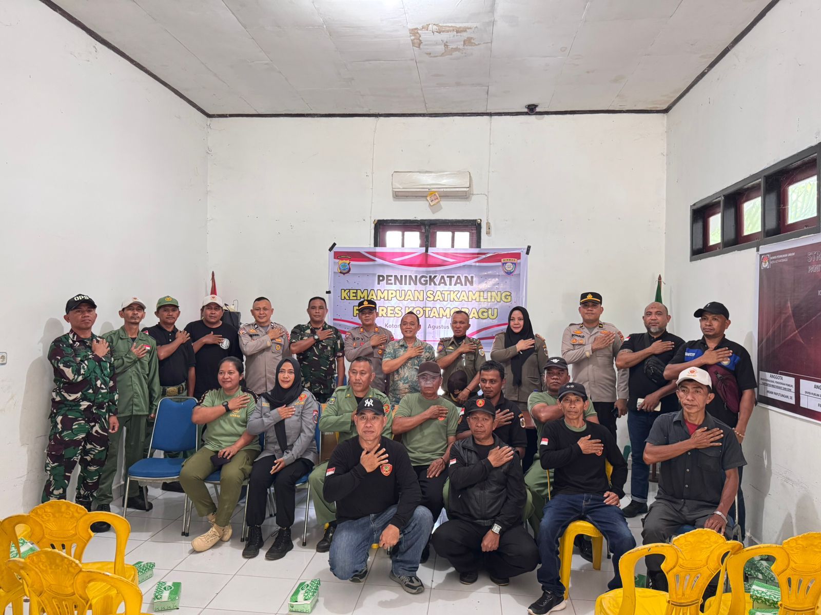 Sebanyak 20 personil perlindungan masyarakat (Linmas) se-Kecamatan Kotamobagu Barat mendapat pelatihan peningkatan kemampuan dari Satuan Binmas Polres Kotamobagu di aula Kecamatan Kotamobagu Barat, Kamis (28/8/2025).