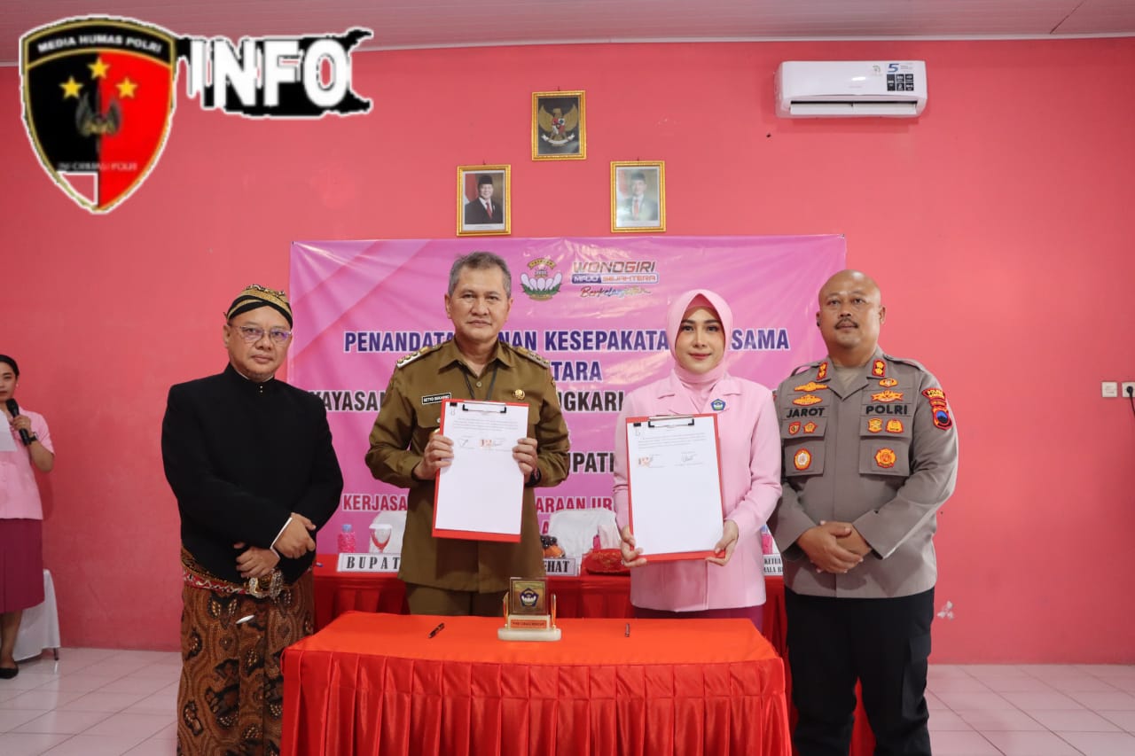 Puncak acara dilakukan penandatanganan MoU oleh pihak Yayasan Kemala Bhayangkari Cabang Wonogiri dan Pemerintah Kabupaten Wonogiri.