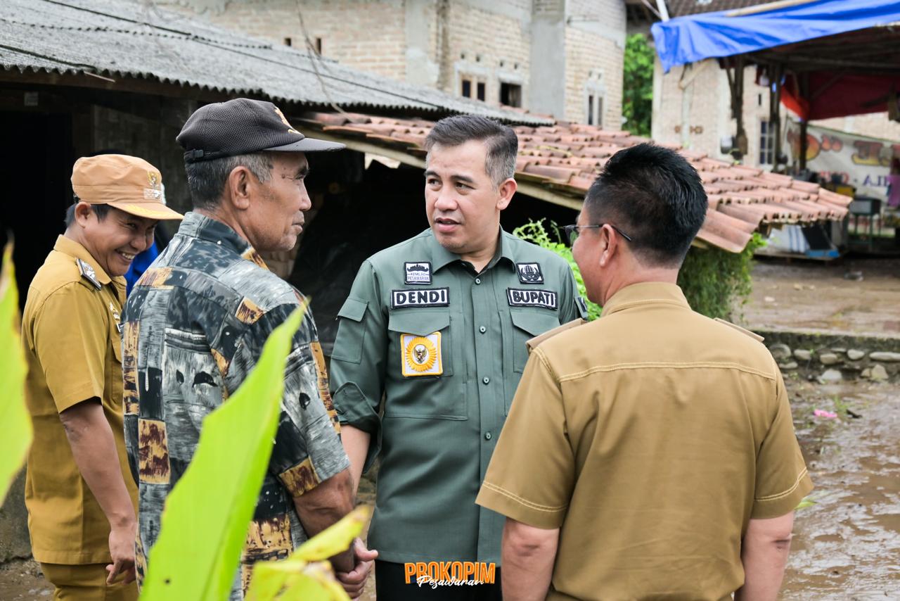 Bupati Pesawaran Dendi Ramadhona meninjau langsung lokasi terdampak banjir di Desa Penengahan, Kecamatan Way Khilau, pada Senin (21/4/2025). Peninjauan itu dilakukan pasca bencana banjir yang terjadi akibat hujan dengan intensitas tinggi dan berlangsung lama.