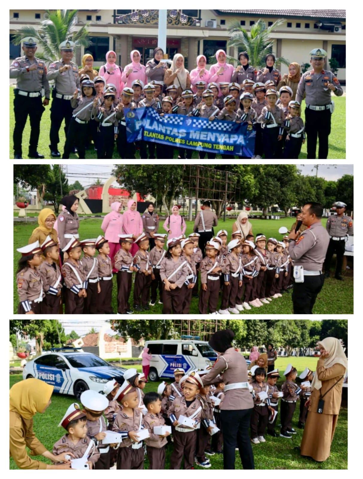 TK Kemala Bhayangkari 26 Lampung Tengah menggelar kegiatan outing class ke Mapolres Lampung Tengah, pada Selasa pagi (14/10/25).
