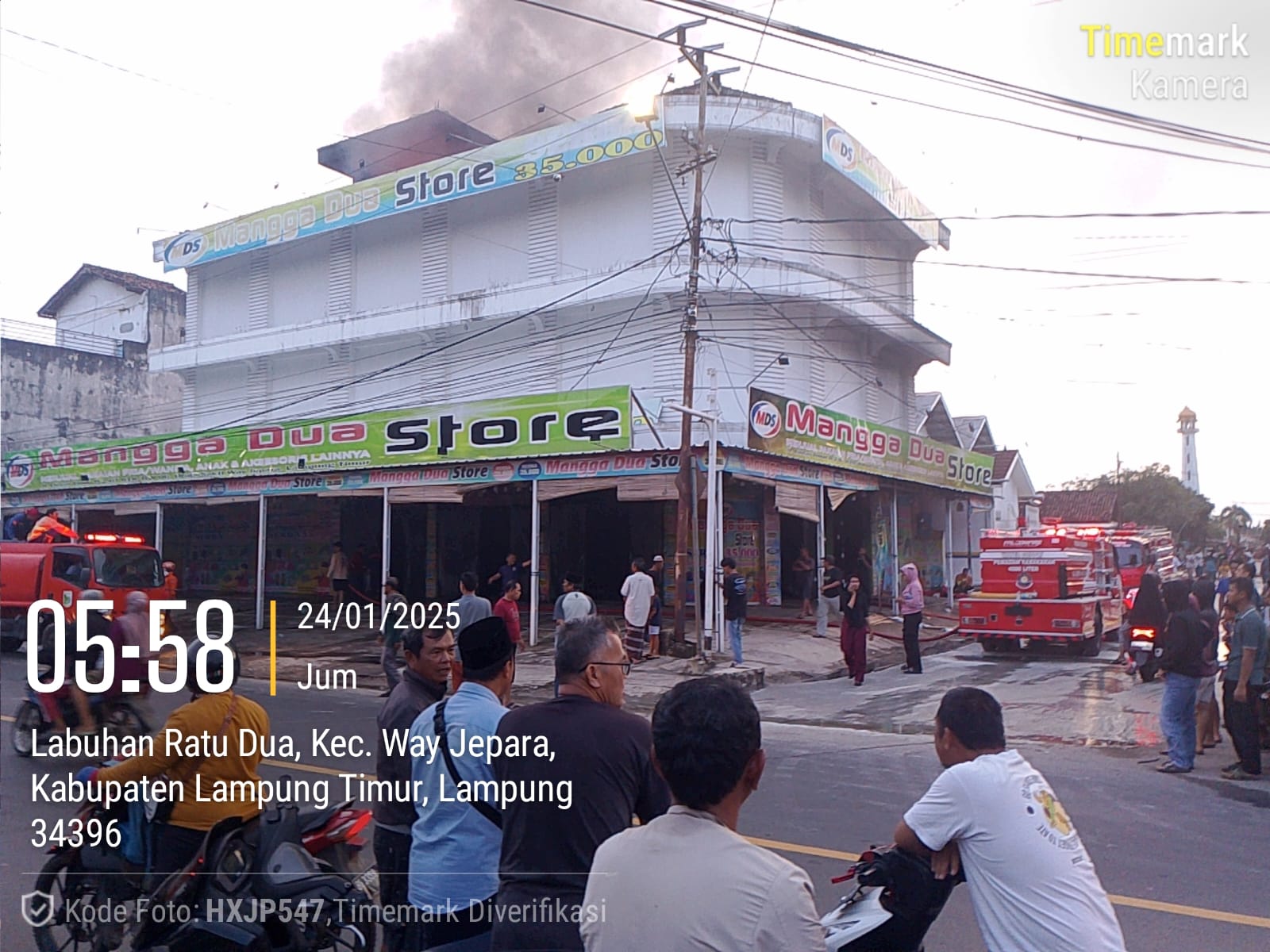 Kebakaran yang di dugan disebabkan oleh konsleting listrik membakar Toko Pakaian Mangga Dua Store di pojok pasar way jepara jalan Lintas Timur, Jumat 24/1/2025
