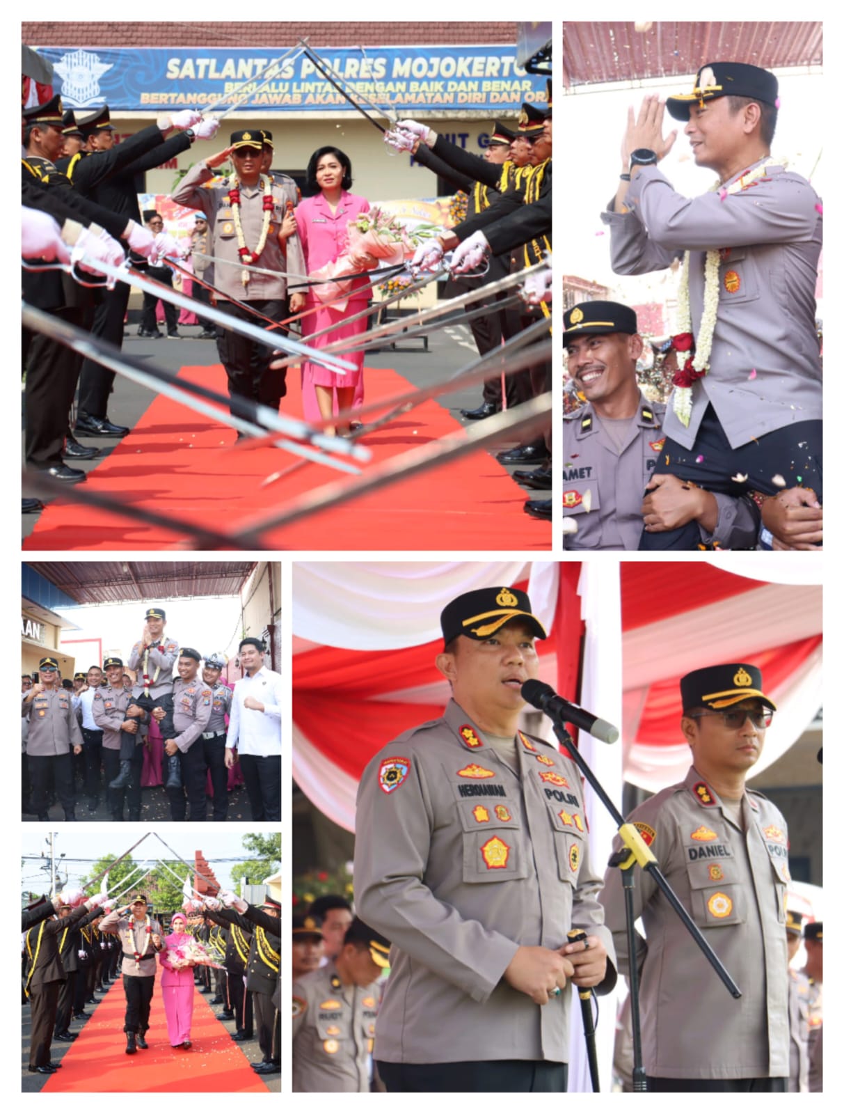 Tradisi Penyambutan dan Farewell Parade digelar menyertai pergantian Kapolres Mojokerto Kota dari AKBP Daniel S. Marunduri S.I.K., M.H kepada AKBP Herdiawan Arifianto S.H., S.I.K., M.H. yang dilaksanakan di Lapangan Patih Gajah Mada Polres Mojokerto pada Jumat (12/07/2025)