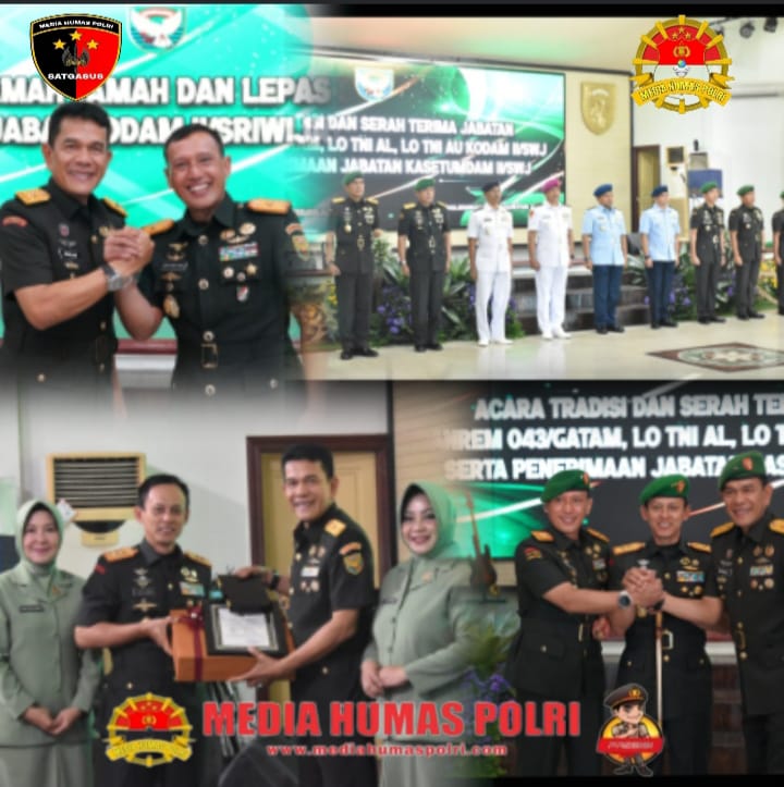 Pangdam II/Sriwijaya (Swj) Mayjen TNI Ujang Darwis, M.D.A., memimpin langsung upacara Serah Terima Jabatan (Sertijab) Komandan Korem (Danrem) 043/Garuda Hitam (Gatam) dari Brigjen TNI Rikas Hidayatullah, S.E., M.M., kepada pejabat baru Brigjen TNI Haryantana, S.H. Upacara digelar khidmat di Gedung Sudirman, Makodam II/Swj, Palembang, Sumatera Selatan.6/8/2025