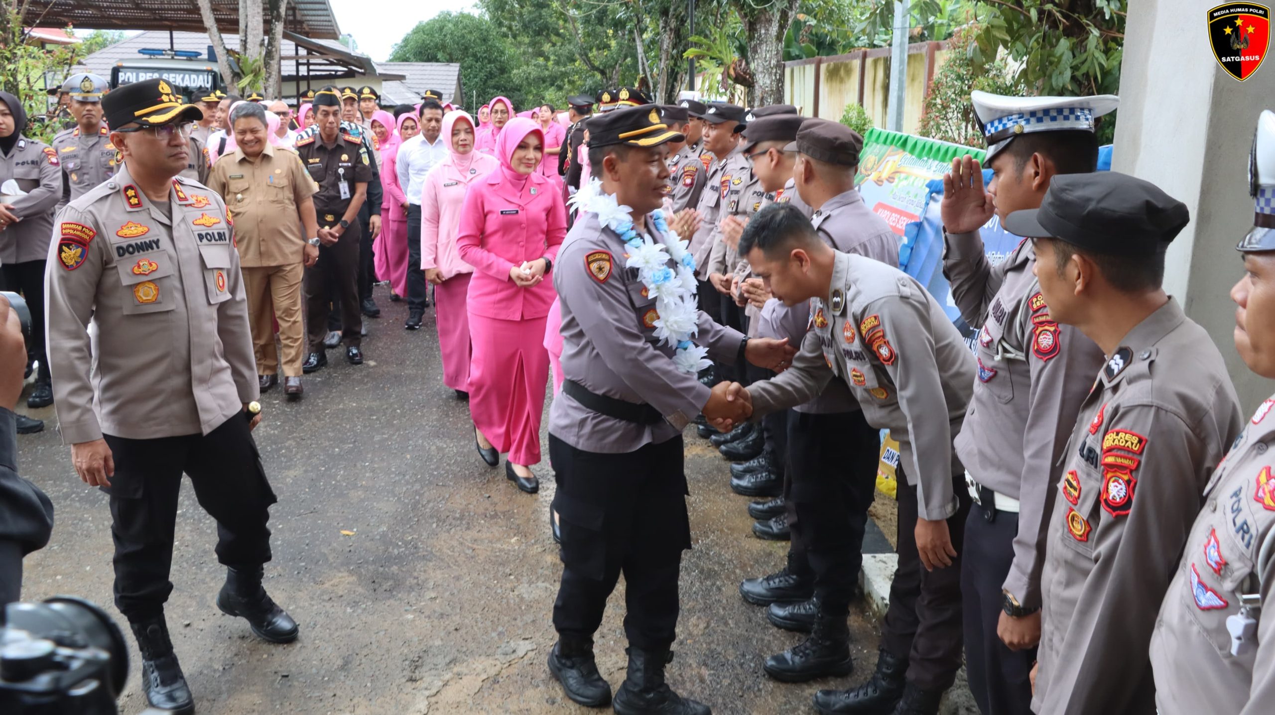 Suasana haru menyelimuti tradisi pelepasan Kapolres Sekadau sebelumnya, AKBP Dr. I Nyoman Sudama, S.I.K., M.Si., beserta Ketua Bhayangkari Cabang Sekadau, Ny. Echa Nyoman Sudama, yang resmi mengakhiri masa tugasnya di Polres Sekadau.