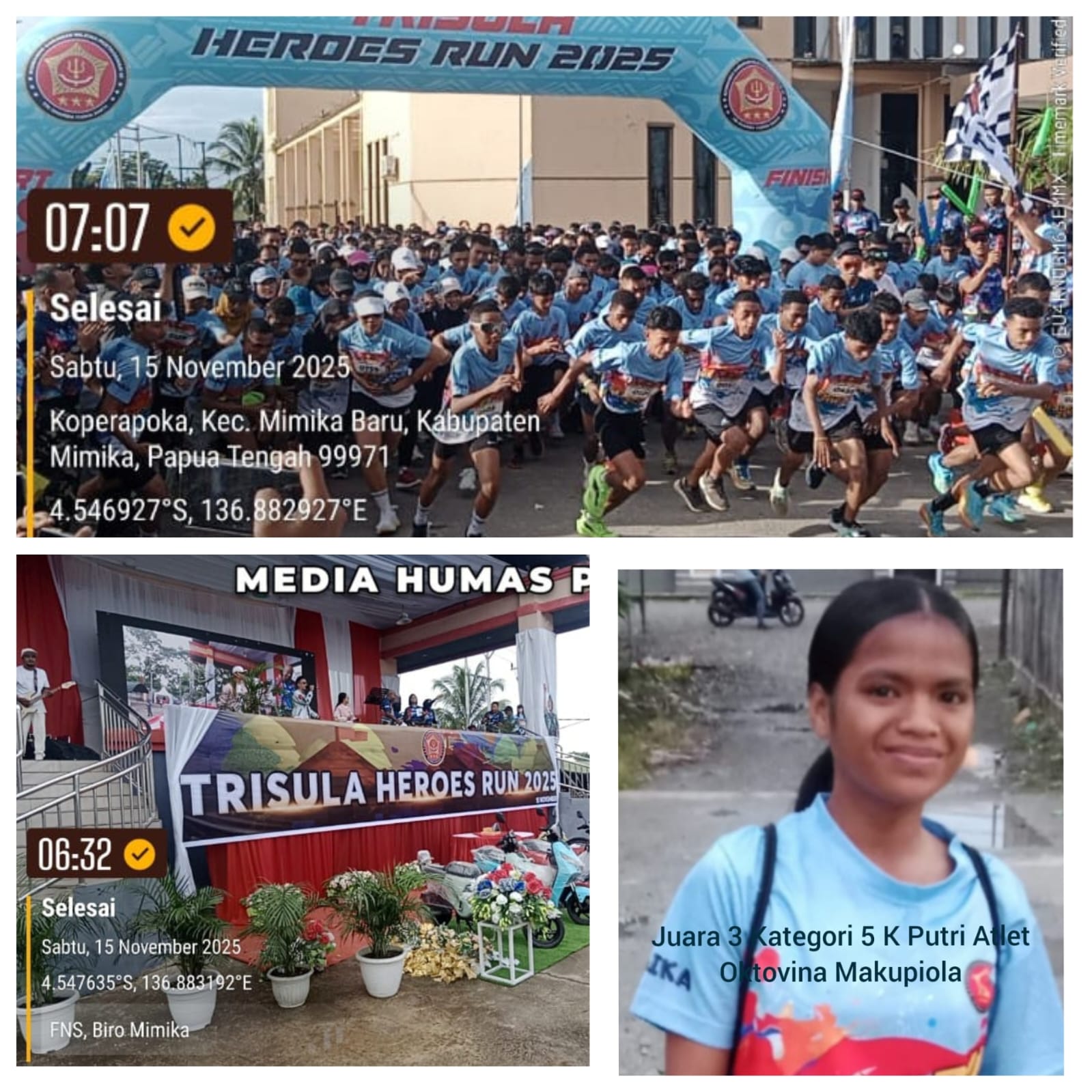 Ribuan pelari dari berbagai kalangan usia meramaikan “Trisula Heroes Run 2025” yang digelar Satuan Tentara Nasional Indonesia (TNI) di Kabupaten Mimika, Provinsi Papua Tengah.