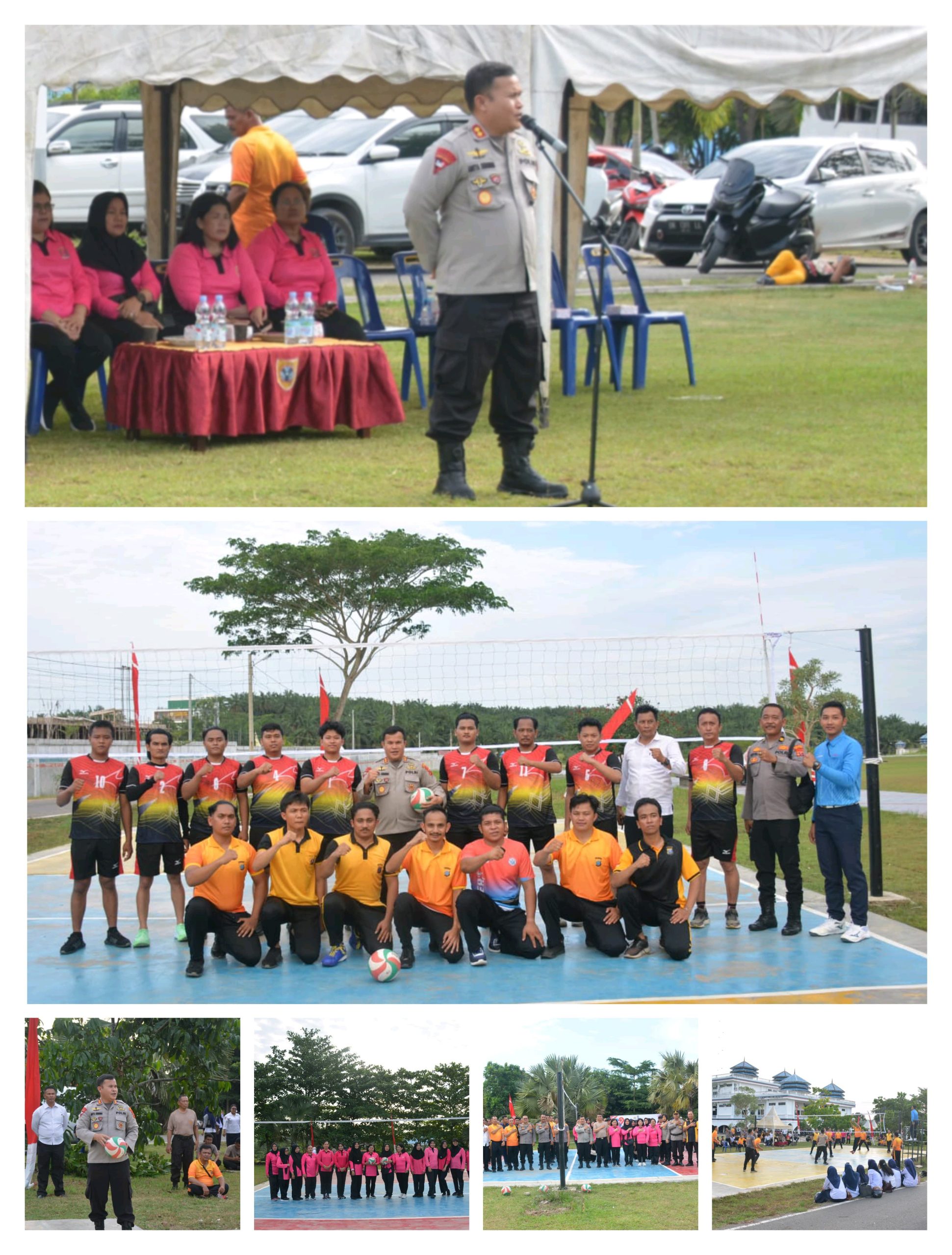 Laga pembuka turnamen mempertemukan tim Sat Reskrim melawan tim Sat Narkoba. Pertandingan dimulai dengan pemukulan bola pertama oleh Kapolres Labuhanbatu Selatan, AKBP Aditya S.P. Sembiring M, S.I.K., serta berjalan sengit dan penuh semangat, dengan saling serang dan kejar-mengejar poin yang membuat suasana meriah. Setelah melalui pertandingan tiga set yang cukup ketat, akhirnya tim Sat Reskrim Polres Labuhanbatu Selatan keluar sebagai pemenang dengan skor 2-1.