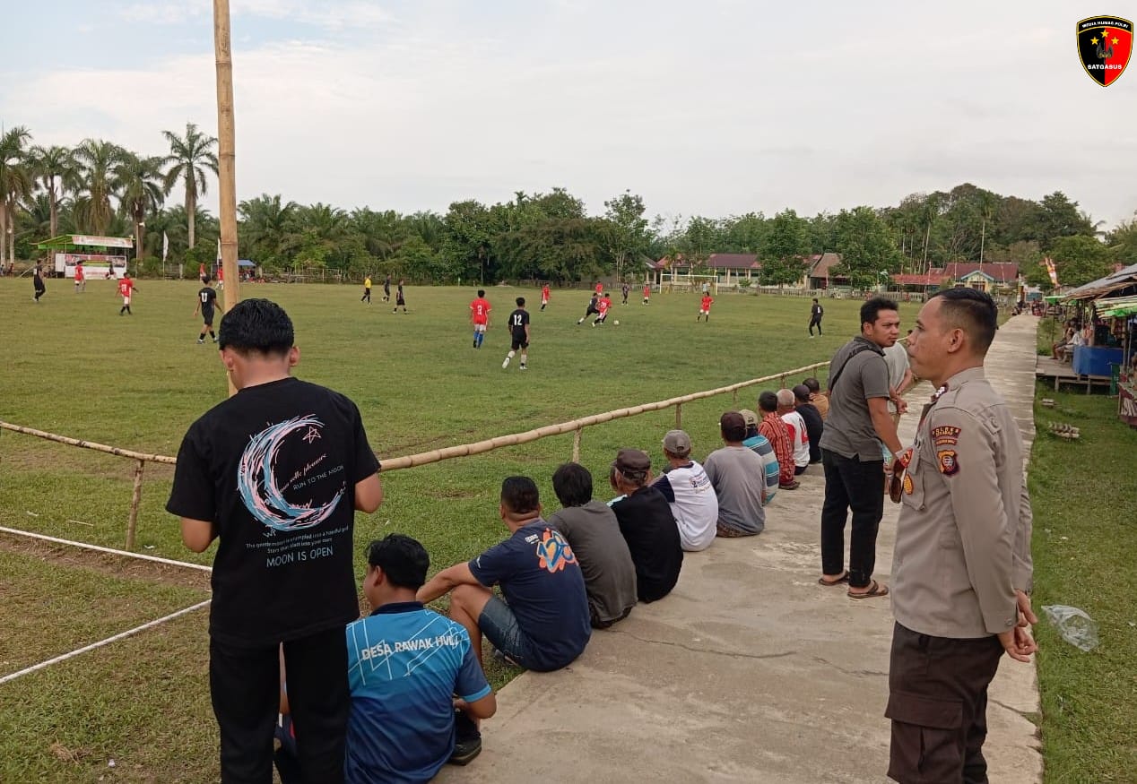 Polsek Sekadau Hulu memastikan jalannya turnamen sepak bola dalam rangka HUT ke-80 Republik Indonesia berlangsung aman dan kondusif. Pertandingan digelar di Lapangan Gapura, Desa Rawak Hulu, Kecamatan Sekadau Hulu, Kabupaten Sekadau, Minggu (31/8/2025).
