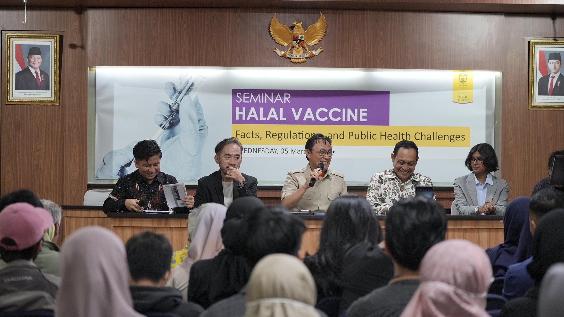 Berbicara sebagai narasumber seminar, Sekretaris Utama (Sestama) Badan Penyelenggara Jaminan Produk Halal (BPJPH) Muhammad Aqil Irham, menekankan pentingnya sertifikasi halal bagi produk, termasuk produk vaksin. “Kehalalan sebuah produk, terutama vaksin, harus dijamin melalui proses sertifikasi yang ketat. Ini bukan hanya untuk memenuhi aspek keagamaan, tetapi juga untuk memastikan keamanan dan kualitas produk yang digunakan masyarakat,” ungkap Sestama BPJPH, Muhammad Aqil Irham, di Kampus UI, Rabu (05/03/2025).