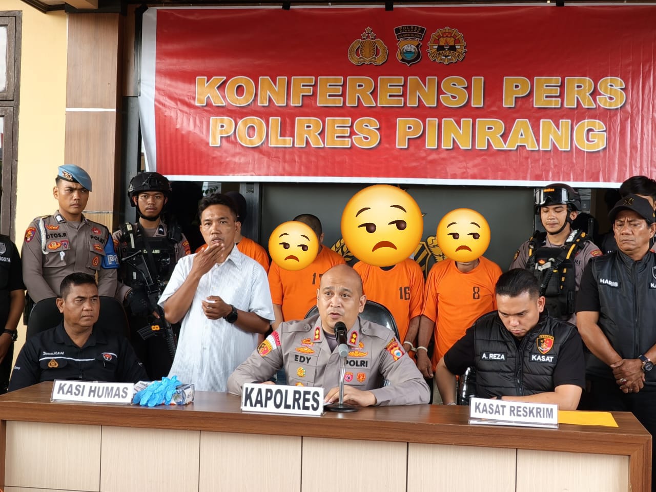 Pengungkapan beberapa kasus tindak pidana, mulai dari perjudian hingga pembunuhan, Polres Pinrang gelar Press Release yang dipimpin langsung Kapolres Pinrang AKBP Edy Sabhara Mangga Barani, S.I.K., didampingi Kasat Reskrim Polres Pinrang IPTU Andi Reza Pahlawan dan Kasi Humas IPTU Darwis Manniaga, Rabu (23/4/2025)..