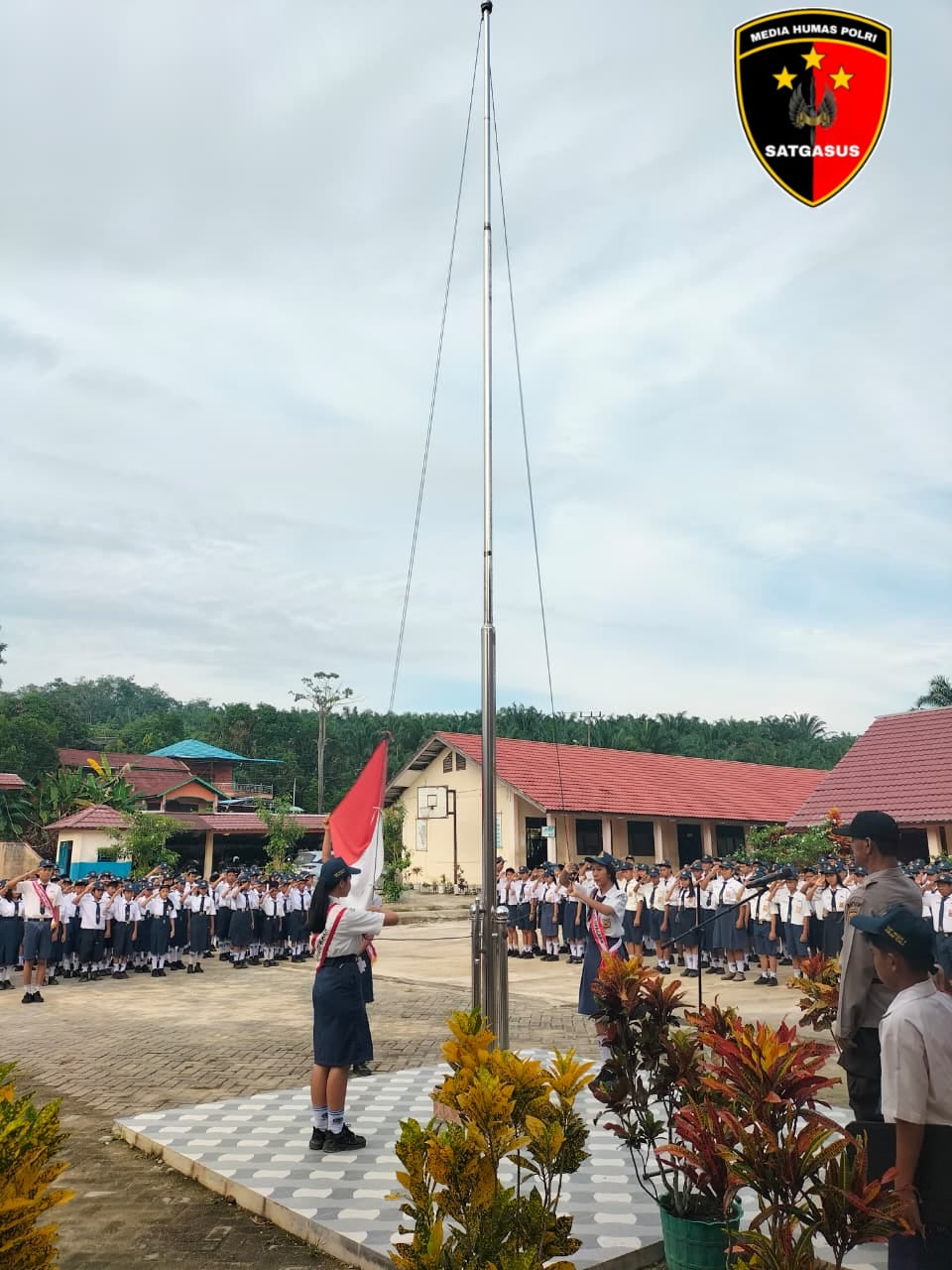 Polsek Sengah Temila ~Polres Landak ~ Polda Kalbar ~ Suasana pagi yang cerah di halaman SMP Negeri 6 Sengah Temila, Dusun Batu Duduk, Desa Paloan, Kecamatan Sengah Temila, Kabupaten Landak, menjadi saksi pelaksanaan Upacara Bendera Senin (6 Oktober 2025) yang berlangsung khidmat dan penuh semangat.