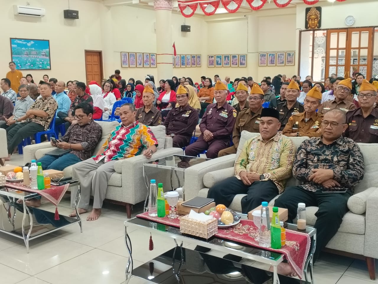 Sejumlah peserta yang terdiri dari para tokoh agama, pegiat toleransi, mahasiswa dan para legium veteran, mendengarkan dengan hikmat paparan narasumber. Pada sesi tanya jawab, ketika moderator Reni Tampubolon memberikan kesempatan, sejumlah orang mengacungkan tangan ingin bertanya dan memberikan tanggapan.