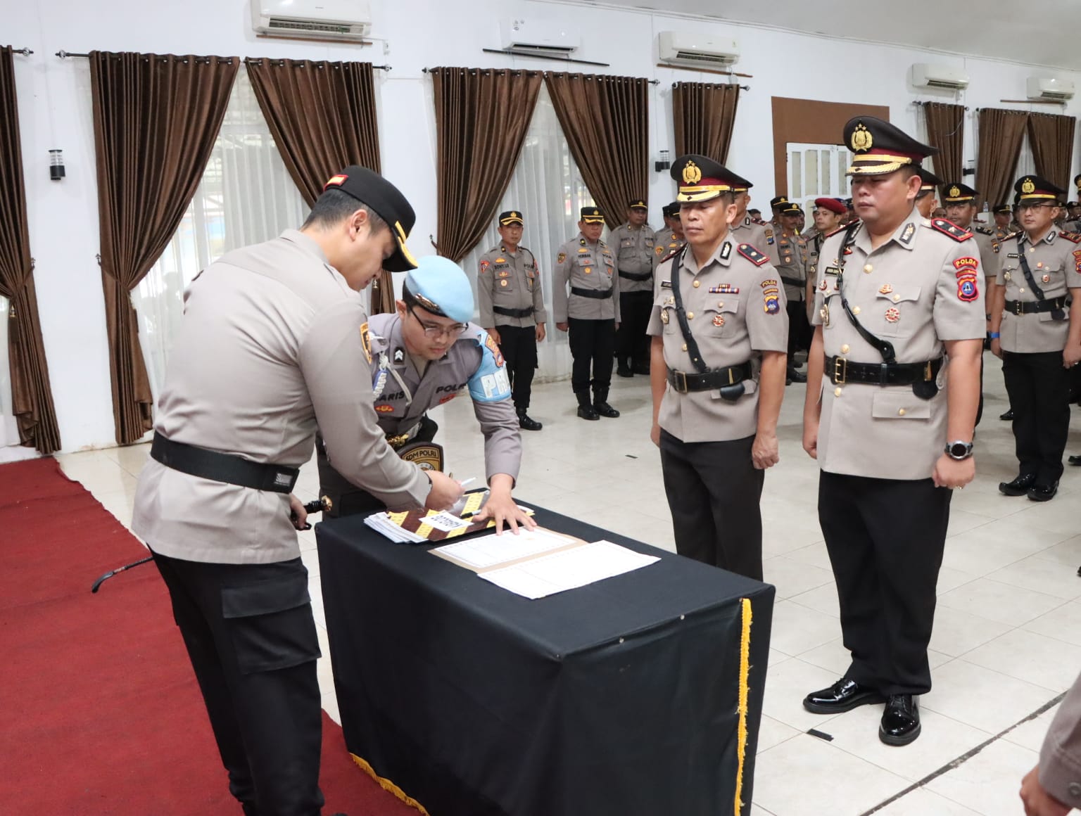 Kapolres Batola AKBP ANIB BASTIAN, S.I.K., M.H pimpin Upacara serah terima jabatan Waka Polres, PJU dan Kapolsek pada selasa (25/2/2025).