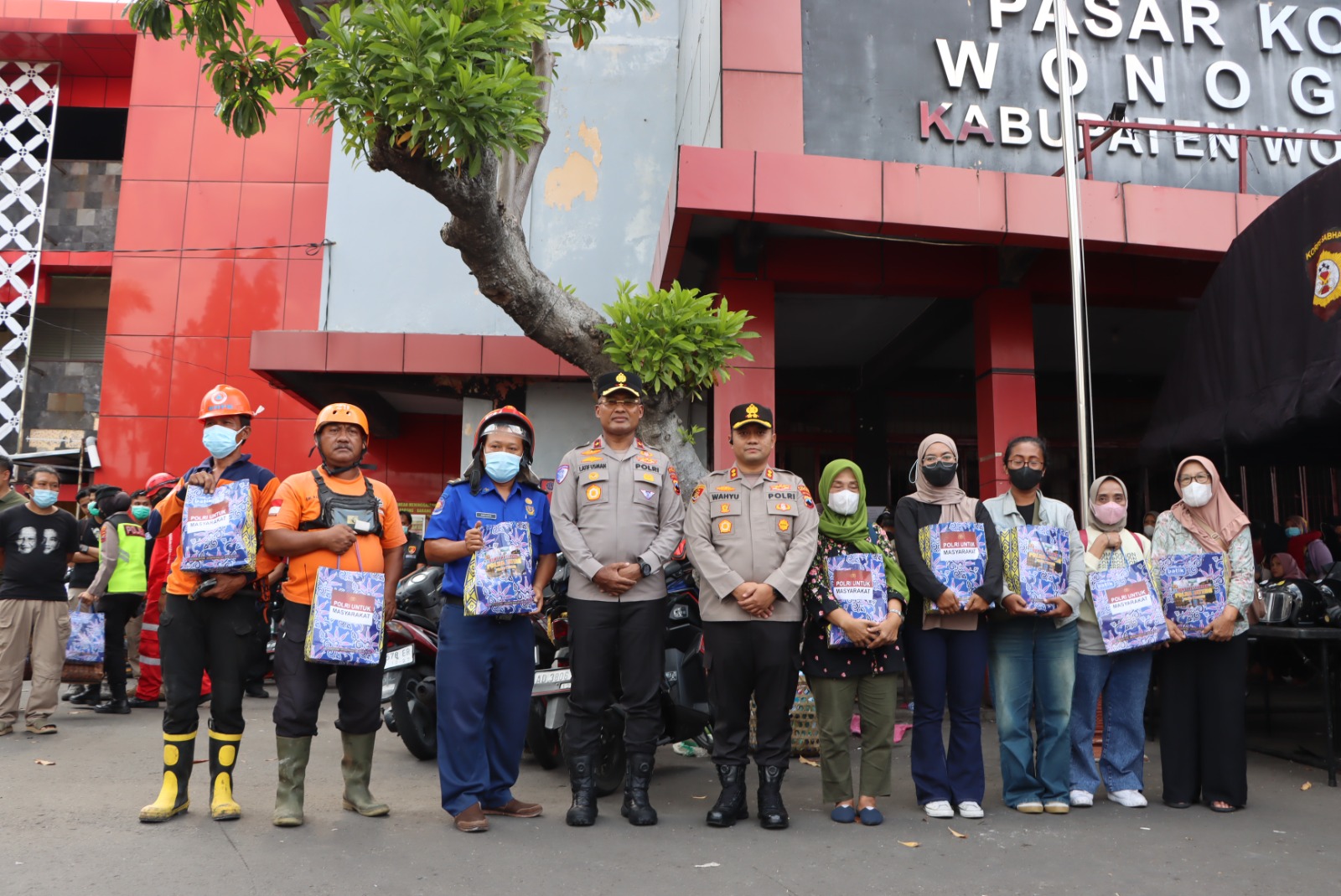 Usai kegiatan, sekitar pukul 14.00 WIB, Wakapolda Jateng bersama rombongan meninjau Pasar Induk Wonogiri yang sebelumnya mengalami kebakaran. Di lokasi, ia menyerahkan bantuan sembako kepada masyarakat, pedagang, dan relawan yang terdampak.