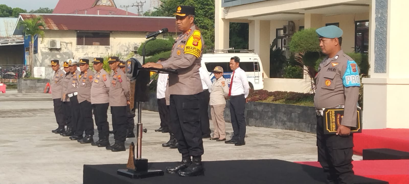 Dalam amanatnya, Wakapolres menyampaikan pesan pimpinan sekaligus memberikan apresiasi atas kinerja jajaran personel yang dinilainya berkontribusi besar dalam menjaga stabilitas keamanan Kota Balikpapan.