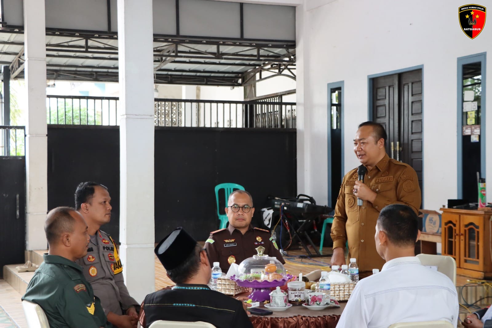 Wakapolres Ketapang Kompol Frits Orlando Siagian, S.I.K., M.H. didampingi oleh Kasat Binmas AKP Matalip serta Kapolsek Benua Kayong Ipda Edwin Kolai, S.E. menghadiri kegiatan Coffee Morning bersama Bupati Ketapang dan unsur Forum Koordinasi Pimpinan Daerah (Forkopimda) Kabupaten Ketapang. Acara berlangsung di Pondok Pesantren Mambaul Khairat, Jalan Pulau Seribu, Kelurahan Kauman, Kecamatan Benua Kayong, Kabupaten Ketapang, Senin (24/11/2025).