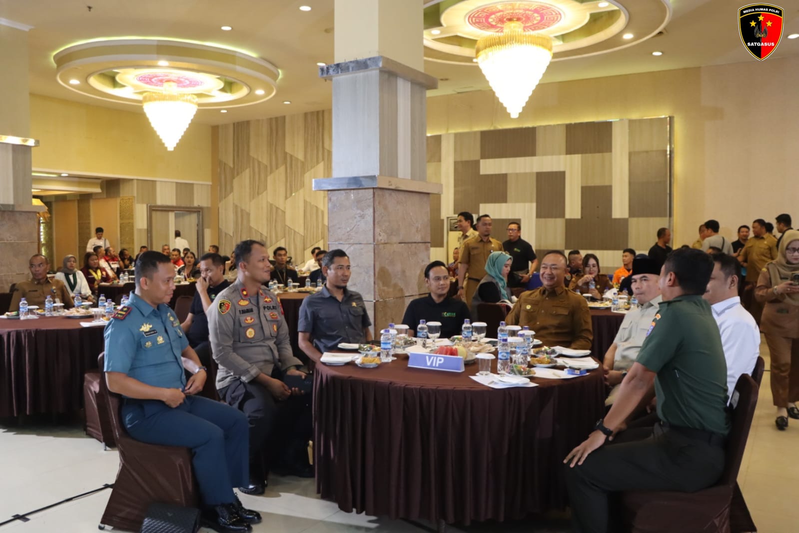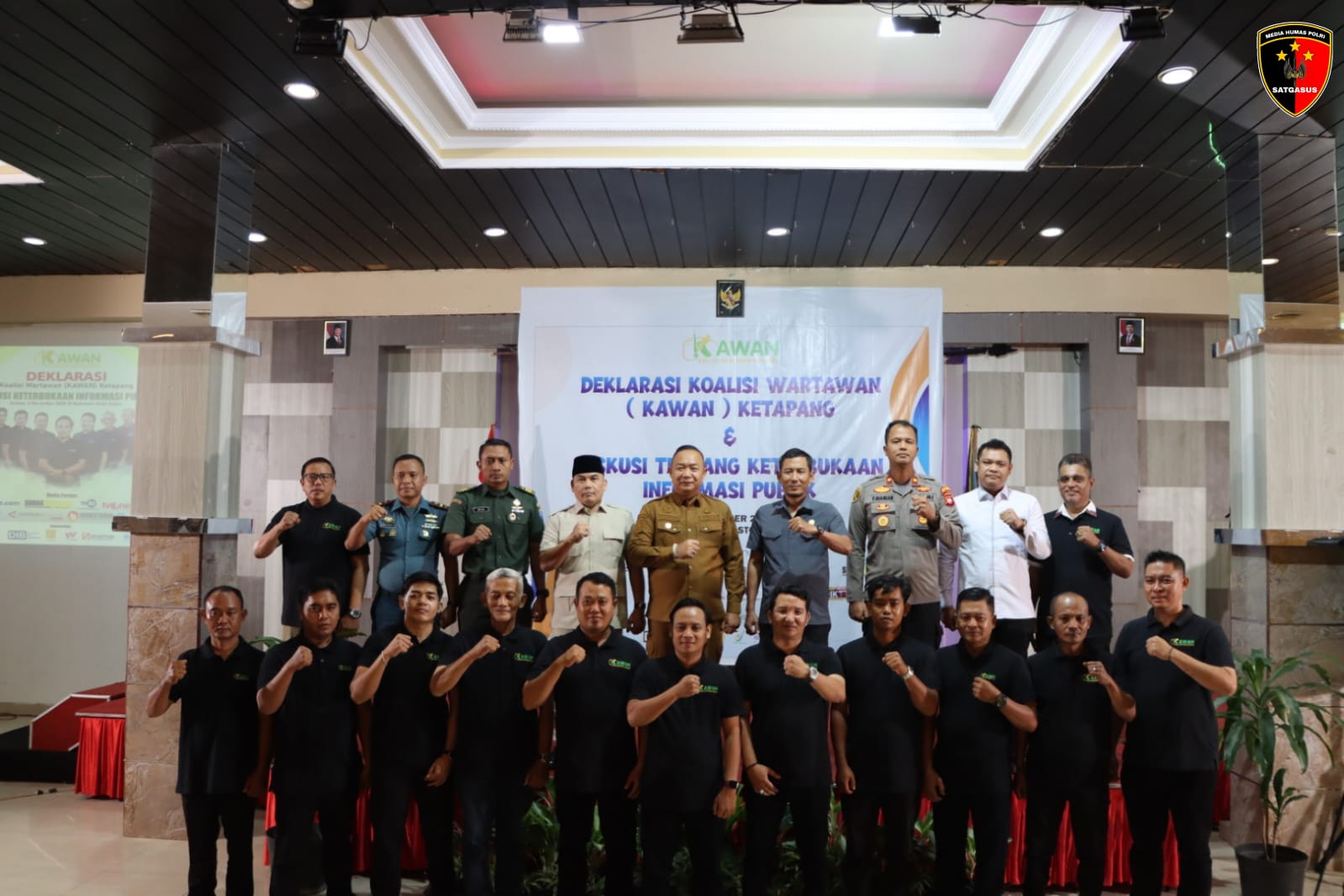 Wakil Kepala Kepolisian Resor (Wakapolres) Ketapang Kompol Frits Orlando Siagian, S.I.K., M.H. bersama jajaran Forkopimda Kabupaten Ketapang menghadiri kegiatan Deklarasi Koalisi Wartawan (KAWAN) Ketapang yang dirangkaikan dengan Diskusi Publik bertempat di Ballroom Hotel Aston Ketapang, pada Selasa (04/11/2025).