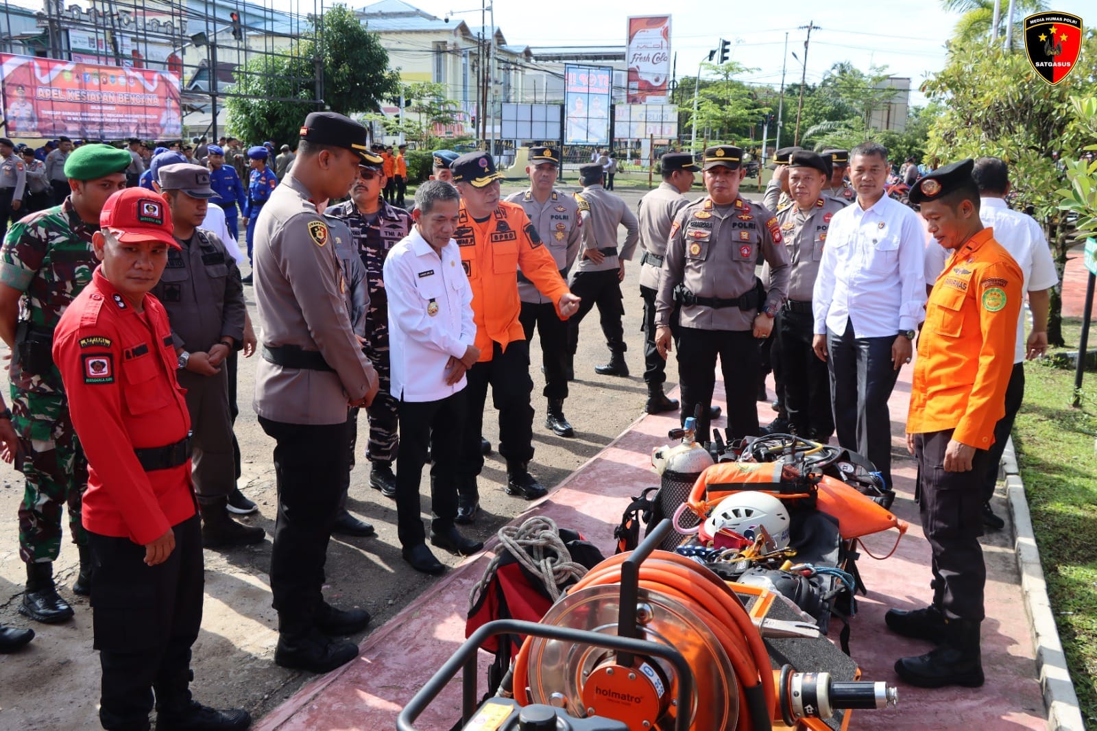 Dalam rangka memastikan kesiapan personel dan sarana prasarana menghadapi potensi bencana alam di wilayah Kabupaten Ketapang, Kapolres Ketapang AKBP Muhammad Harris S.H., S.I.K., M.I.K., CPHR yang diwakili oleh Wakapolres Ketapang Kompol Frits Orlando Siagian, S.I.K., M.H memimpin langsung Apel Kesiapan Tanggap Darurat Bencana Tahun 2025, yang dilaksanakan di lapangan apel Mapolres Ketapang, pada Rabu (05/11/2025).