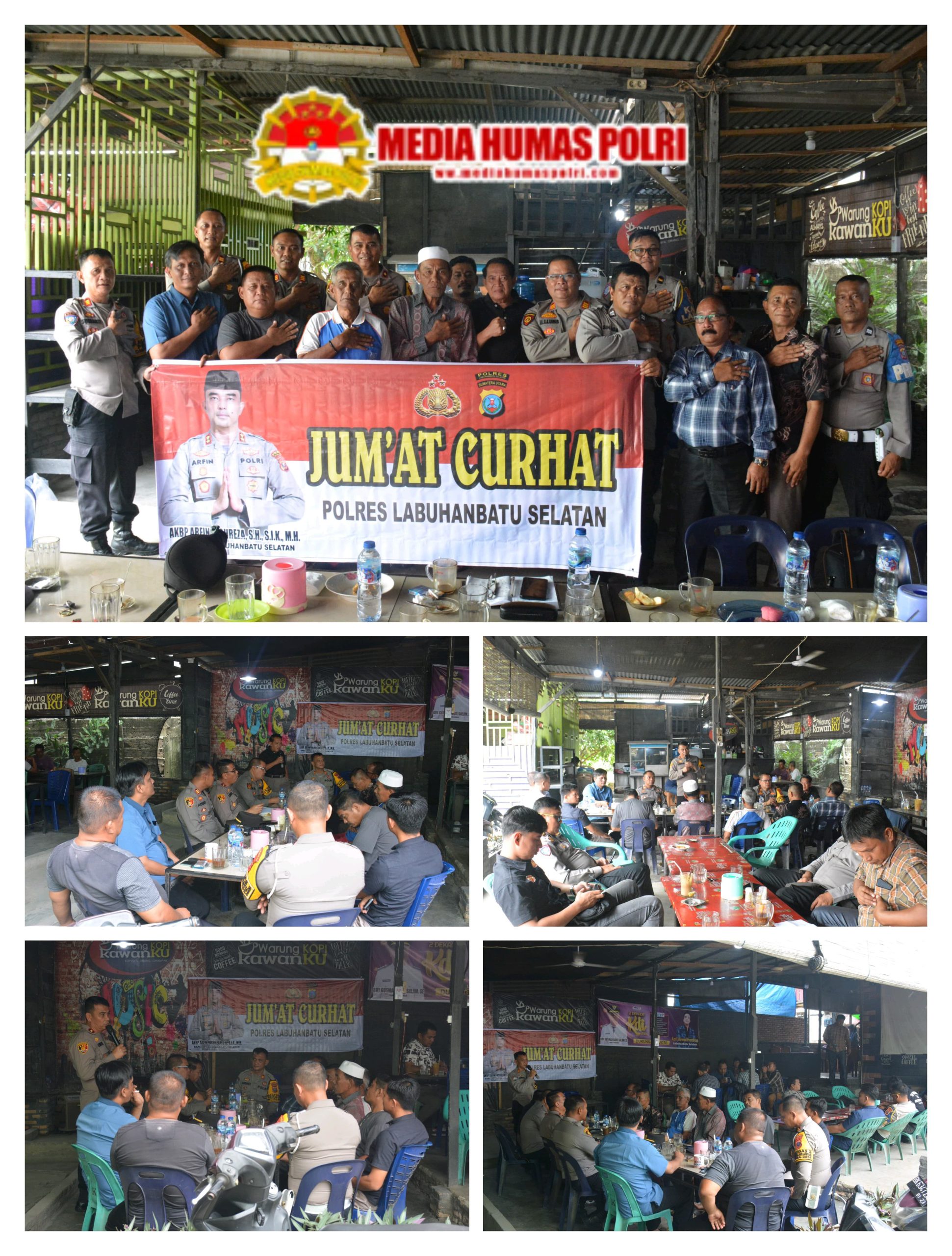 Wakapolres Labuhanbatu Selatan, KOMPOL Ramsen Samosir, S.H., M.H., memimpin kegiatan *”Jumat Curhat”* yang berlangsung di Warung Kopi Kawanku, yang berada di Jalinsum-Cikampak, Desa Aek Batu, Kecamatan Torgamba, Kabupaten Labuhanbatu Selatan, Jumat (10/1/2025).