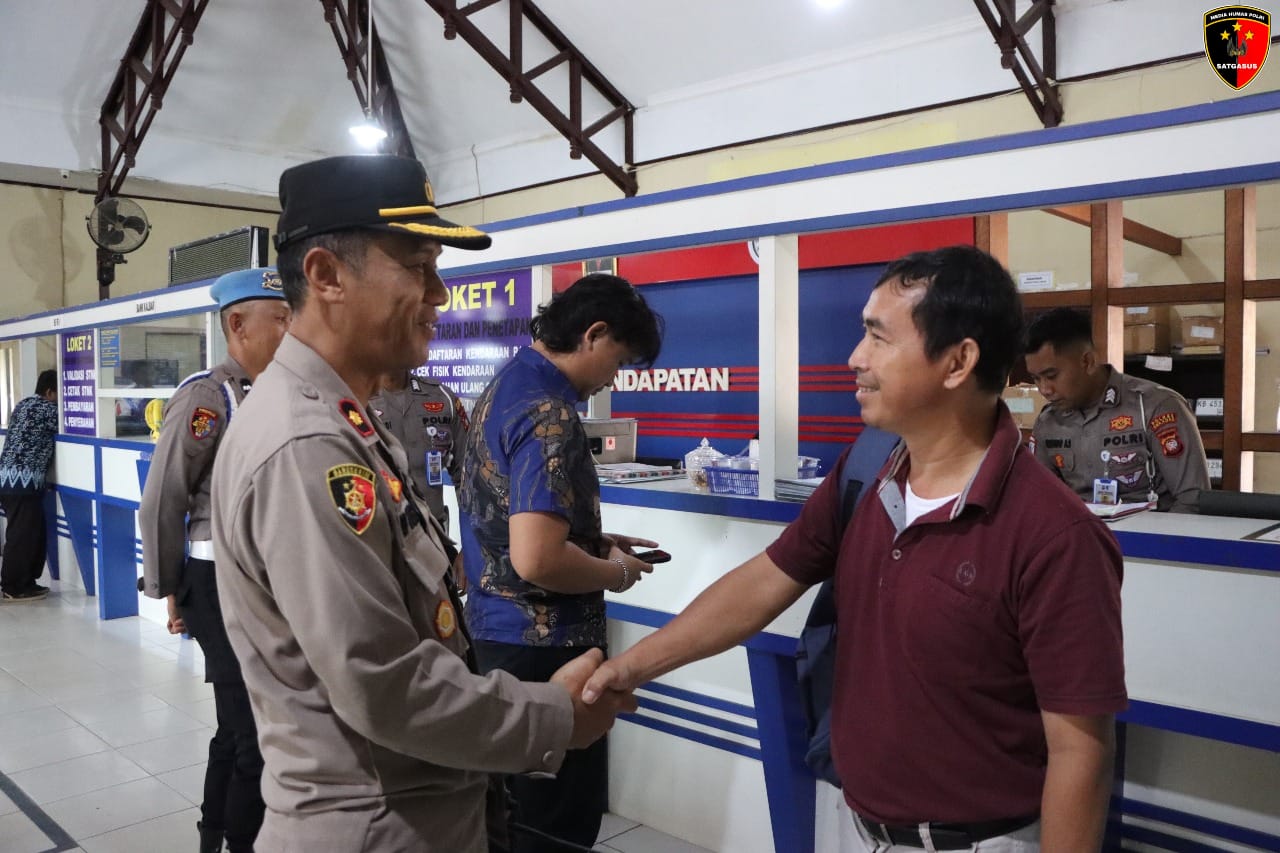 Di sela kegiatan, Wakapolres juga berdialog langsung dengan warga dan memberikan arahan kepada petugas agar selalu menjaga sikap ramah, profesional, serta mengedepankan integritas dalam setiap pelayanan.( Lies )