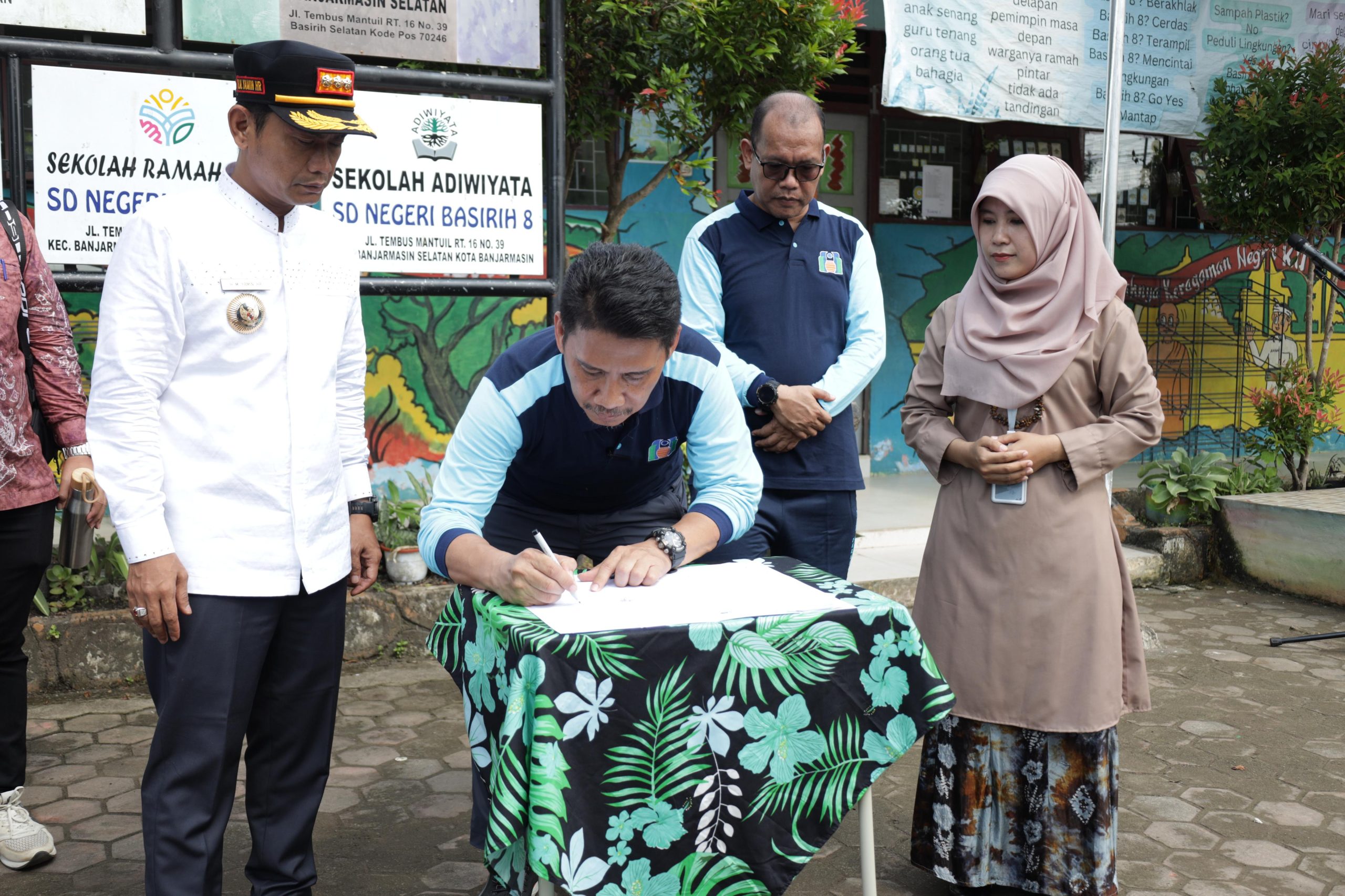 PAM Bandarmasih bersama Pemerintah Kota (Pemko) Banjarmasin serahkan bantuan kran air siap minum, untuk SDN Basirih 8, di Jalan Tembus Mantuil, Kecamatan Banjarmasin Selatan, Jumat (2/5/2025).