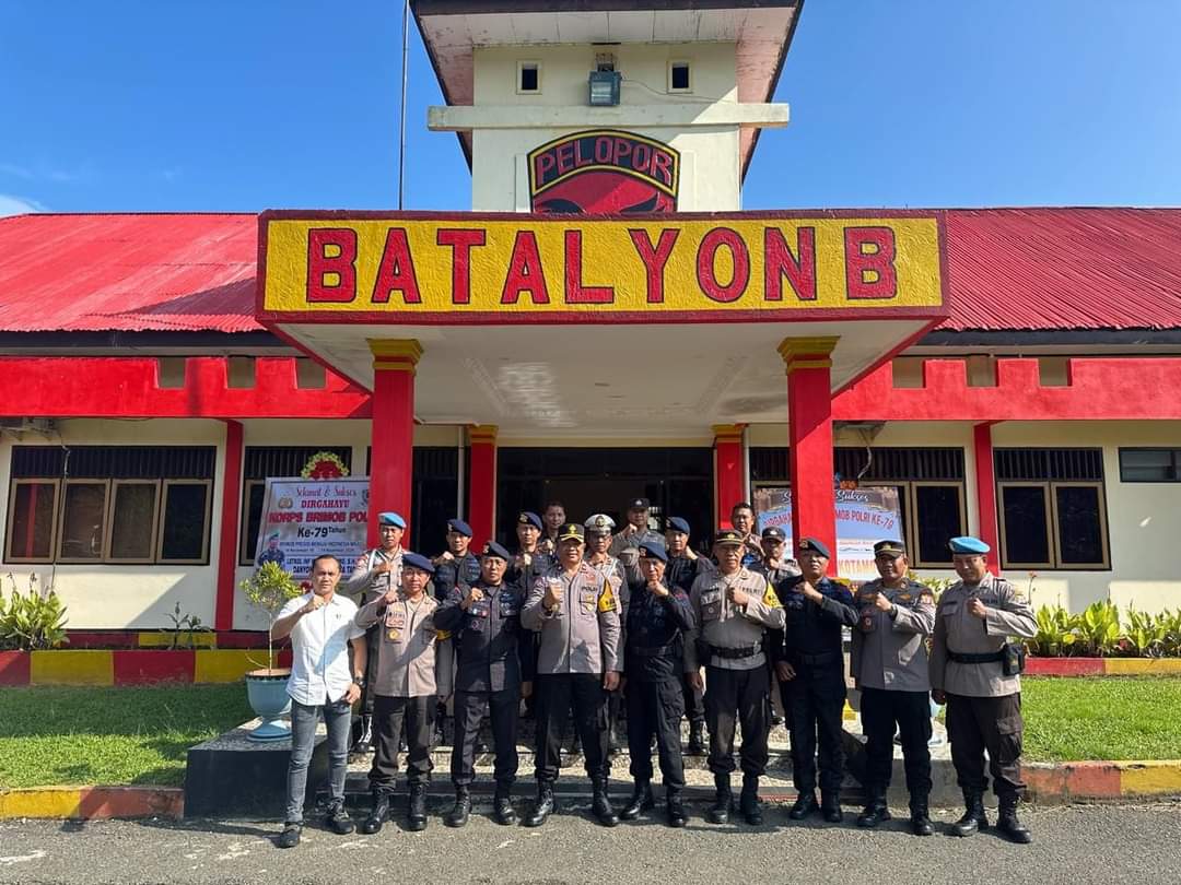 Humas Polres Bolmong. Memeriahkan Hari Ulang Tahun (HUT) Brimob Ke-79, Wakapolres Bolmong Kompol Risno Luas, S.Sos bersama rombongan, menggeruduk Markas Batalyon B Pelopor Brimobda Sulut, yang beralamat di Jalan Trans AKD, Kecamatan Passi, Barat. Kamis (14/11) pagi, sekitar Pukul 07.30 WITA