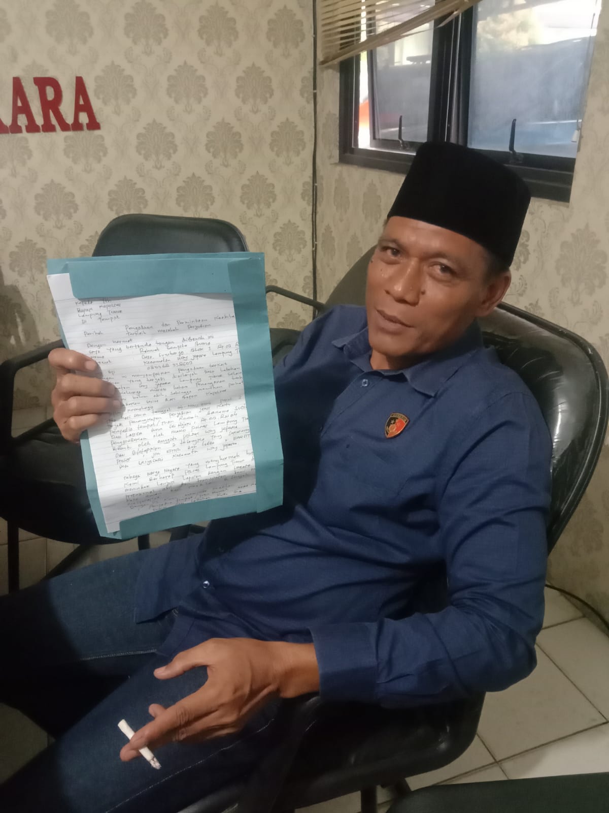 Rahma warga Desa Sumberjo, Kecamatan Way Jepara, memberikan surat kepada Reskrim Polres Lampung Timur, agar melakukan penangkapan terhadap dua orang pelaku judi. Agar polisi terkesan tidak tebang pilih dalam melakukan penangkapan.