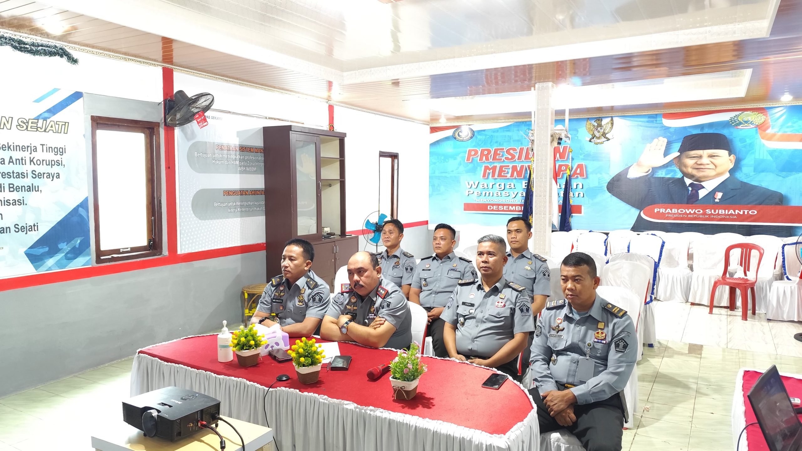 Kalapas Sekayu, Yosef Leonard Sihombing beserta jajaran ikuti kegiatan pengarahan dari Direktur Pengamanan dan Intelijen (Dirpamintel), Teguh Yuswardhie dalam menyambut libur Natal dan Tahun Baru secara virtual, Senin (23/12/2024).