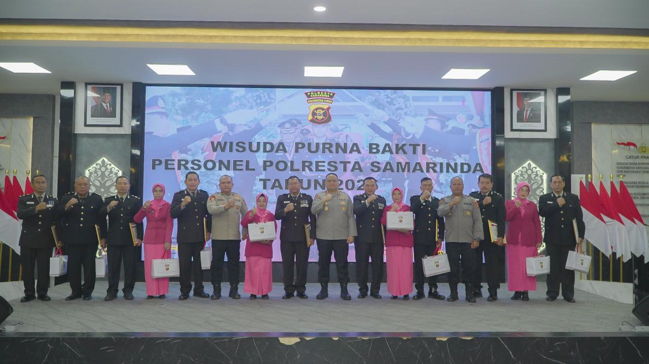 Polresta Samarinda menggelar kegiatan Wisuda Purna Bakti Personel Tahun 2025 sebagai bentuk apresiasi atas dedikasi dan pengabdian tanpa batas para anggota Polri yang telah menuntaskan masa baktinya. Kegiatan penuh haru dan kebanggaan ini berlangsung di halaman Mapolresta Samarinda, pada Jumat (7/11).