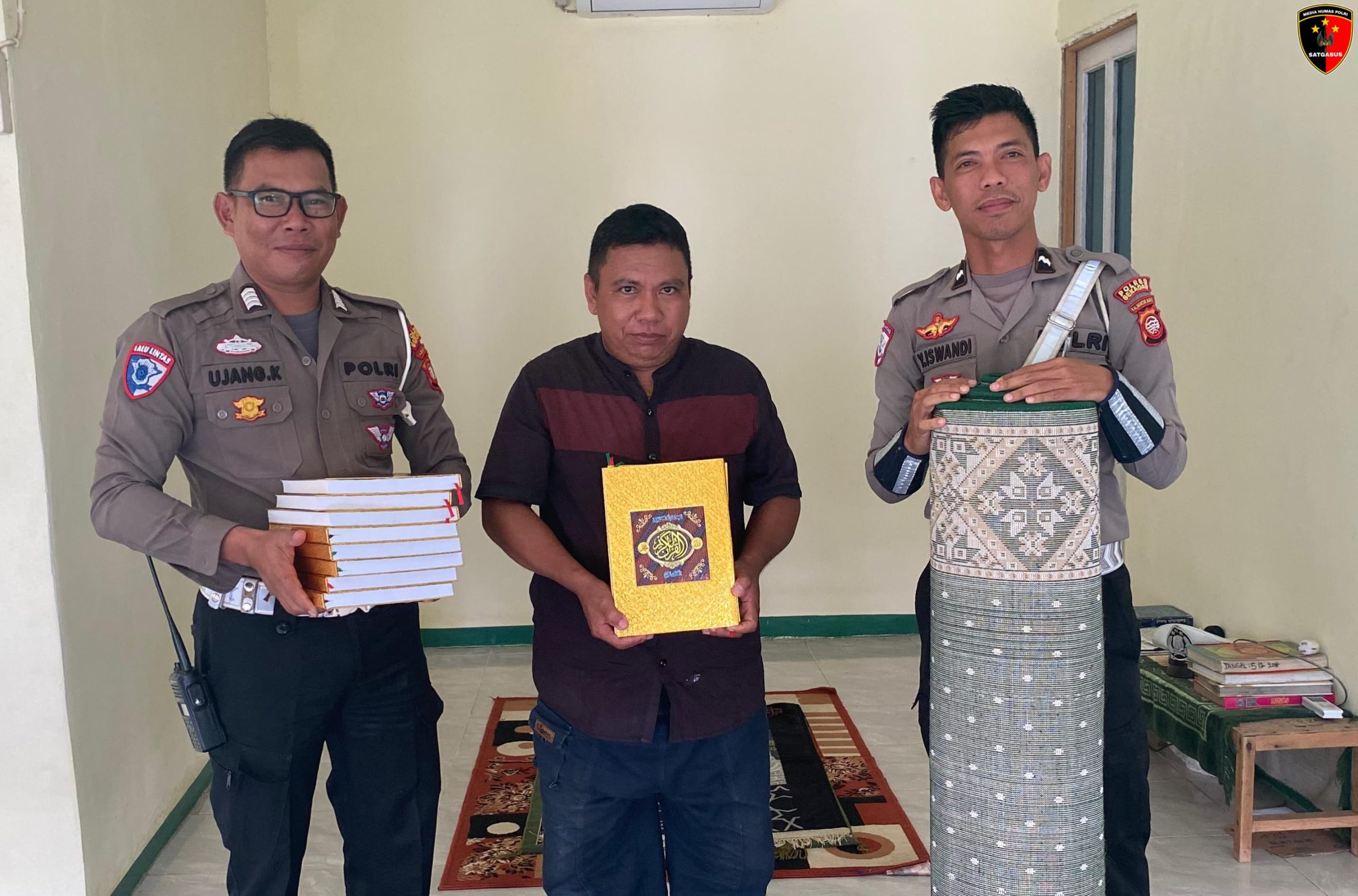 Dipimpin oleh Kanit Kamsel Aipda Yuni Iswandi, personel Satlantas menyerahkan bantuan berupa empat karpet sajadah dan dua belas mushaf Al-Qur’an. Bantuan tersebut diterima langsung oleh pengurus surau, Ahmad Dzakir.